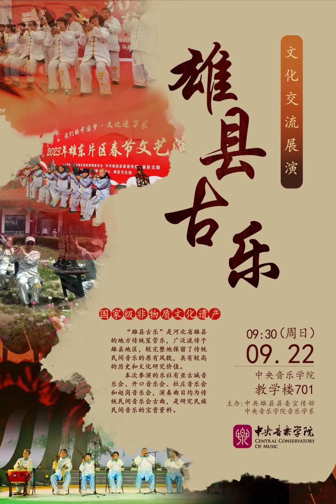 2024年9月22日,由开云kaiyun官方网站音乐学系与中共雄县县委宣传部共同主办的“国家级非物质文化遗产‘雄县古乐’文化交流展演”活动在开云kaiyun官方网站教学楼701厅顺利举行。