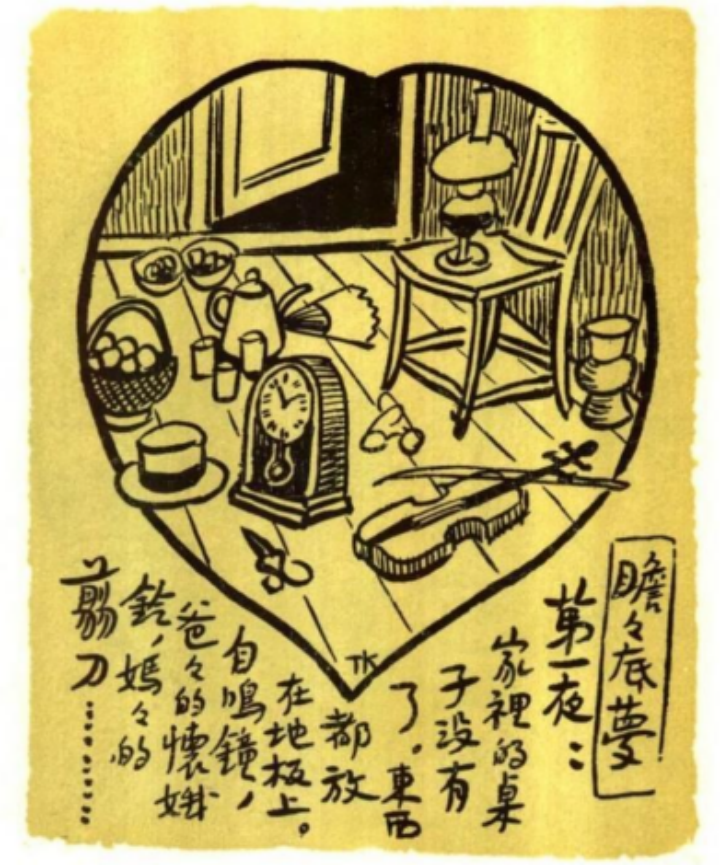 吴天戈的《如绘 II 漫画三则》创作灵感来源于丰子恺先生“瞻瞻底梦”系列中的三幅画作(如图3[4])。作品充分利用了各乐器间不同音色的融合与对比,而使得音乐极具画面感。作曲家力图通过对音乐中各种元素的调配与组合进而对三幅漫画作品进行不同维度的重新讲述。