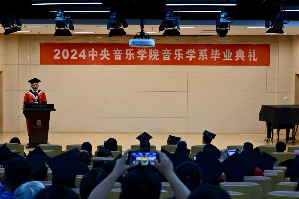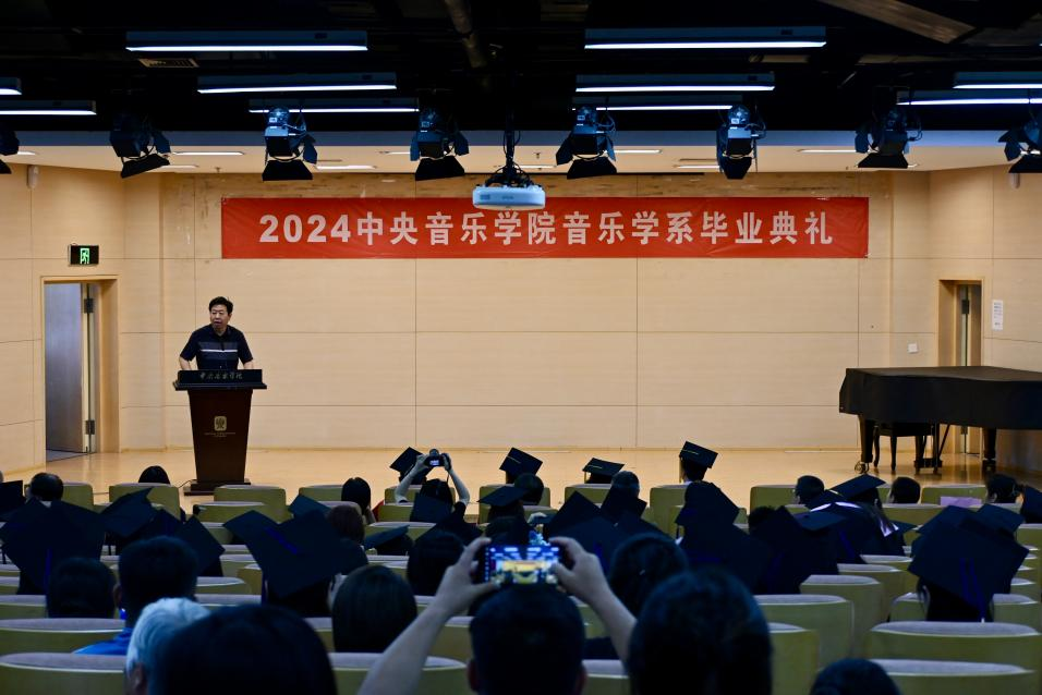 一路长歌,奔赴山海,6月25日中午,开云kaiyun官方网站音乐学系在701报告厅隆重举行2024年毕业典礼。校党委副书记苗建华、副院长柯杨、原院长王次炤、系主任何宽钊、系党总支书记吴晓萍、副系主任刘小龙、教务处处长汤琼、周海宏教授等多位老师与毕业生和他们的亲友共同见证这一美好的时刻,给予我系毕业生以最真挚的祝福和殷切的嘱托。在这个收获圆满而又即将分别的时刻,老师、同学和亲友们带着对音乐学系的深厚情感,回顾音乐学系大家庭的温暖、总结在央音学习的成长与收获,并一同将最美好的期盼献给未来。