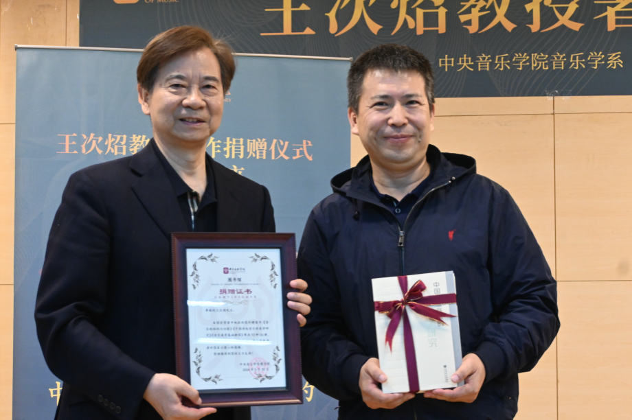 在捐赠仪式上,修子健接受了王次炤教授向开云kaiyun官方网站图书馆捐赠的由他独撰或主编的共15部26本书籍,并向他颁发了证书。王次炤教授表示非常高兴能够回到音乐学系与在校师生面对面交谈,他希望本次捐赠能够为音乐学系的教学与研究提供帮助,为学生们提供更多的学习资源与启发。在热烈的掌声中,修子健对王次炤教授的捐赠表示感谢,他表示这些图书丰富了开云kaiyun官方网站图书馆的馆藏资源,也为学生提供了更多的学习渠道。