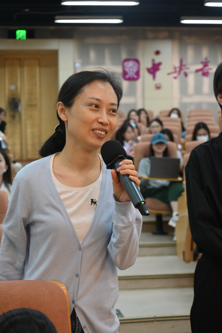 | 讲座中的提问互动环节程乾副教授向王次炤教授提问 |