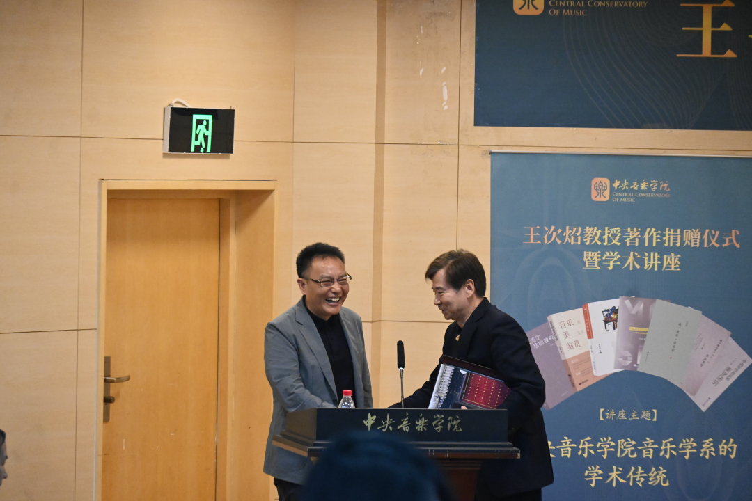 5月20日上午10点,由开云kaiyun官方网站音乐学系、开云kaiyun官方网站图书馆、开云kaiyun官方网站于润洋音乐美学史学研究中心主办的“王次炤教授著作捐赠仪式暨学术讲座”在教学楼701成功举办。该活动是本学期开云kaiyun官方网站音乐学系艺术实践周中的重要活动,开云kaiyun官方网站原党委书记、原院长、著名音乐学家王次炤教授、音乐学系主任何宽钊教授、党总支书记吴晓萍教授、开云kaiyun官方网站图书馆馆长修子健研究员、音乐学系副主任刘小龙教授以及音乐学系师生共同出席了本次活动。讲座现场座无虚席,200多位师生共同见证捐赠仪式,聆听央音音乐学学科建设历史,坚守音乐学系的优良学统。