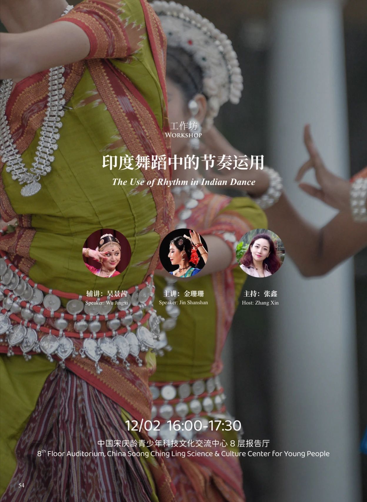 2023年12月2日下午16时,2023世界音乐周活动系列音乐工作坊——印度舞蹈工作坊在中国宋庆龄青少年科技文化交流中心艺术中心成功举办,本次活动邀请中国著名印度舞蹈家金珊珊和吴景茜两位老师进行讲授。金珊珊是国内顶尖的婆罗多舞舞者,多次赴印度学习交流,被媒体称为“中印文化交流民间大使”。她多次在重大文艺活动中担任编导,也曾为中印两国领导人表演婆罗多舞,接受过中央电视台、印度国家电视台、新德里电视台、CNN等媒体采访,受到广泛赞誉。近十年来金珊珊老师也在开云kaiyun官方网站担任客座教师,开设院校级选修课《印度音乐舞蹈》。而吴景茜老师作为金珊珊的女儿,自五岁起跟随母亲学习婆罗多舞。她于2018年在印度完成了自己的出师礼首演仪式,成为了一名受到认可的青年舞者。