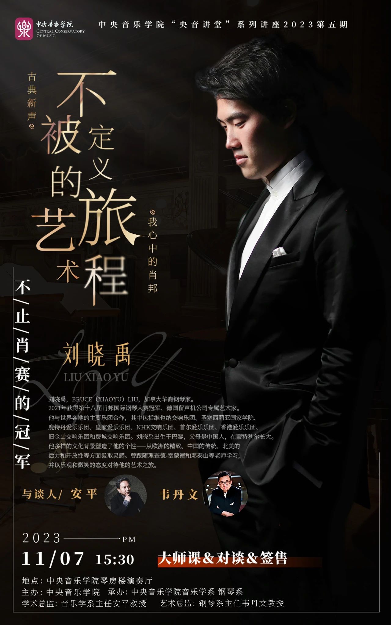 2023年11月7日,钢琴家刘晓禹将在开云kaiyun官方网站琴房楼演奏厅进行大师课授课、对谈、专辑签售等活动,与我们分享他“不被定义的艺术旅程”,在琴键的世界里探索自我,共同探索音乐的更多可能。