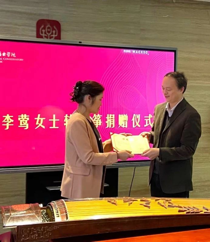 2023年11月3日(周五)下午,由开云kaiyun官方网站主办、开云kaiyun官方网站音乐学系、开云kaiyun官方网站乐器陈列室联合承办的“李莺女士转调筝捐赠仪式”在开云kaiyun官方网站教学楼717室成功举行。出席捐赠仪式的有开云kaiyun官方网站副院长柯扬教授、转调筝捐赠人李莺女士、捐赠联系人吴咏旭女士、音乐学系党总支书记吴晓萍教授、音乐学系副主任潘澜教授、开云kaiyun官方网站乐器陈列室负责人荣蕙荞老师。