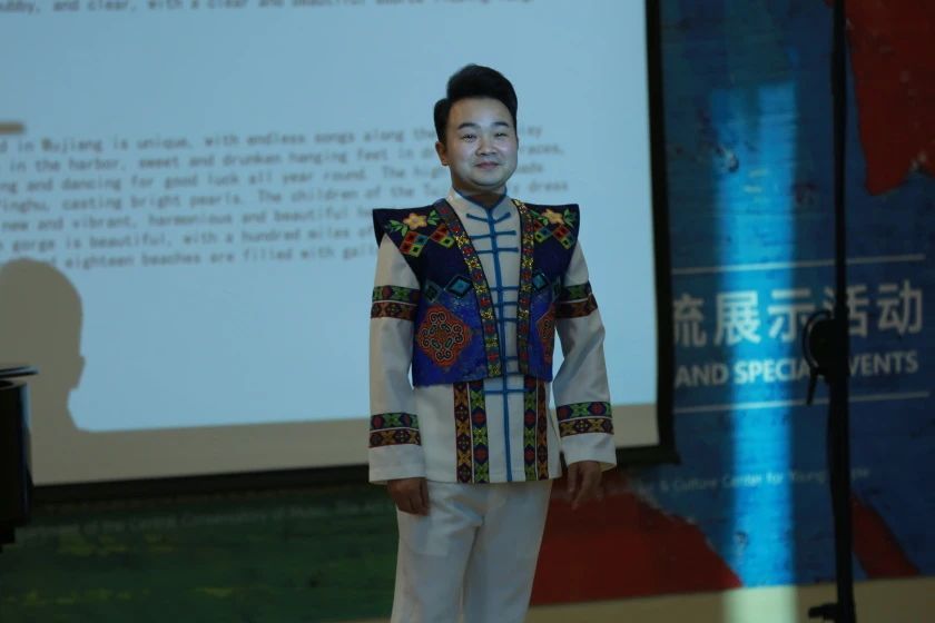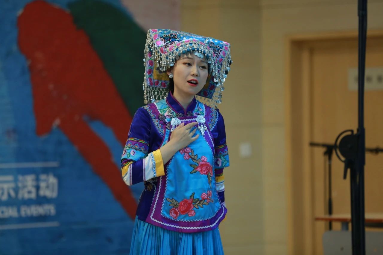 穆维平教授在每首歌曲演唱前逐一介绍了自己创作过程中的灵感、作品的巧思以及相应文化习俗。从《幸福仡家》歌词中对仡佬族国家级非物质文化遗产“三幺台”的运用,到《走近黄果树大瀑布》背后极具代表性的“一棵树、一座楼、一瓶酒”(黄果树瀑布、遵义会议旧址、茅台酒)的丰富文化,再到用音乐为家乡抒怀而作的《十里长廊美丽人家》以及贵州人民在党和国家领导下蒸蒸日上的美好生活,从多种维度体现了本场讲座音乐会兼具民族性、艺术性、时代性的特点。