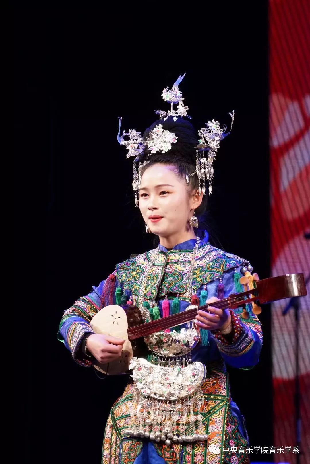 团队的表演精彩绝伦,时而悠扬婉转的唱腔、时而欢腾热烈的舞蹈,一首首精彩的歌舞、一件件独特的乐器,配之以华丽的服装,将贵州少数民族的乐舞文化名片展示于“世界音乐周2019”的舞台,赢得了全场中外观众与青少年的热烈掌声。