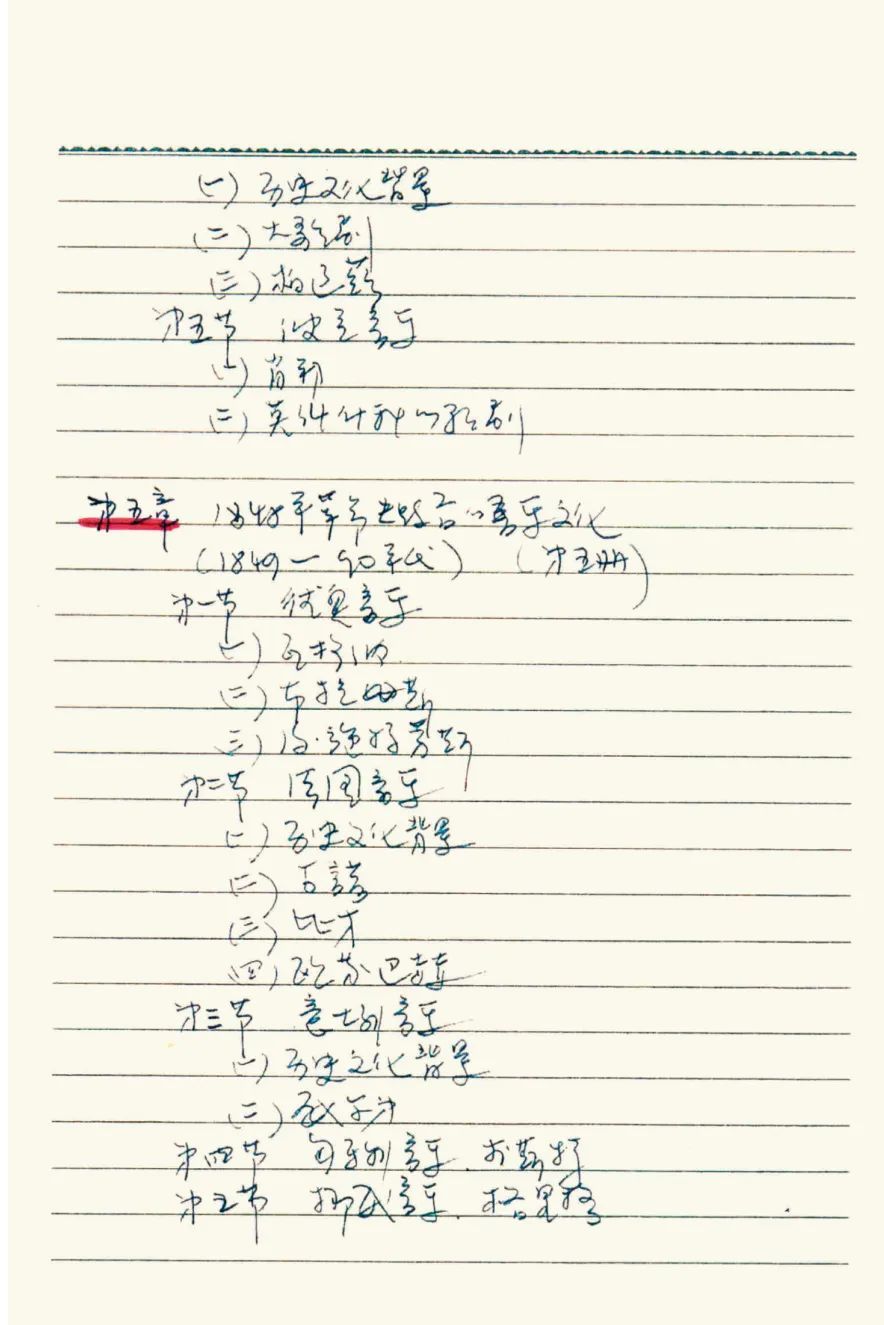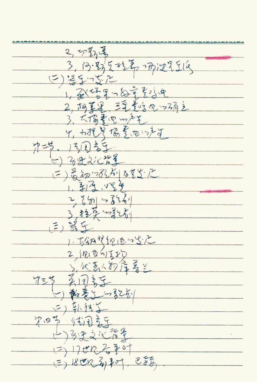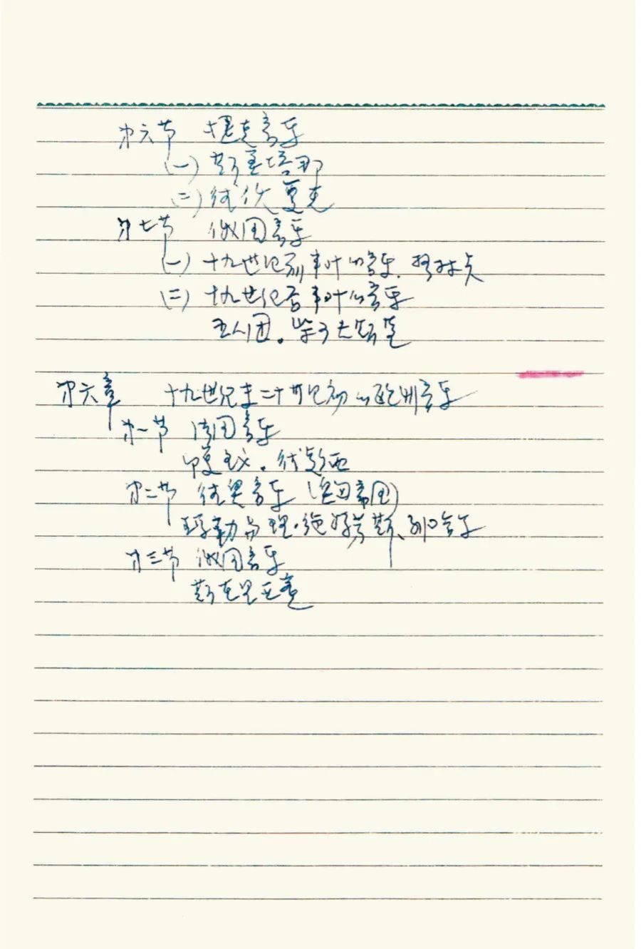 为了开设这门课,于润洋先生编写了近 2000页讲稿,共6章25节, 包含423条手绘谱例。从这沉甸甸的手稿和用钢笔绘制的乐谱中,可以看出于先生为开设这门课程所付出的心血。