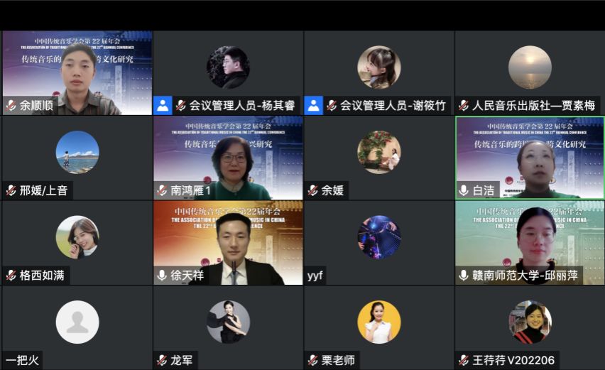 2022年11月28日,中国传统音乐学会第22届年会第六、七、八、九单元围绕“传统音乐的跨地域、跨文化研究”议题在第一会场进行研讨。本场会议于云端举行,共有24位专家及学者与会发言。在多元文化语境中,中国传统音乐的跨文化研究作为学术热点一直备受关注。本次研讨会反响热烈,专家学者们的发言与讨论充分体现了文化多样性、音乐多元性、学科包容性,展示了对话共融、相互促进的学术氛围,共同谱写着传统音乐跨文化研究的无限可能。