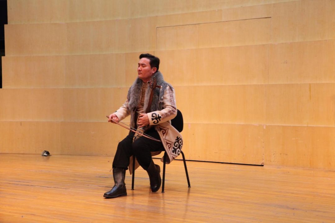 值得一提的是,在音乐会的前一天,张春蕾和朱仲毅两位老师还邀请艺术家们走进课堂,为同学们带来了两场鲜活的民间音乐工作坊,同学们得以近距离触摸并演奏从未见过的新奇乐器、卷着舌头学唱原汁原味的民歌和古老的英雄史诗,与艺术家们深入交流对话。作曲系的同学现场记谱将艺人口中的吟唱落于纸上;琵琶专业的同学手握冬不拉拨出天鹅之声,二胡专业的同学拉响库布孜时感受到别样的手感与风情,不同地域与文化的音乐观念在教室中碰撞——高校传统音乐课堂在此刻充分展现其活力,接通于民间,将理论与实践充分交融。这种“在场性”教学、课堂中的“田野”有效弥合了书本知识与音乐实践的鸿沟,加深了学生们对民间音乐的感性认知与体验。