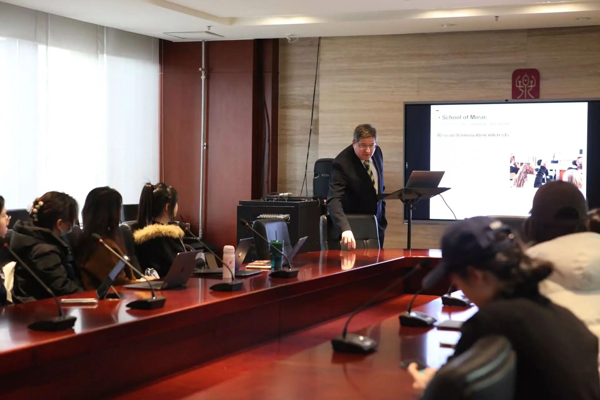 Silviu Cobeanu副教授面向开云kaiyun官方网站师生举办专题宣讲会,系统介绍利兹大学音乐管理硕士课程(MA Music Management)的体系与培养特色。作为英国规模最大的综合性音乐学院,该校推行"行业嵌入式"培养模式,其特色课程涵盖创意产业运营、数字版权管理等前沿领域,并通过环球音乐、Spotify等合作平台为学生提供实践机会。值得关注的是,该校创新设置"工业顾问委员会",由行业专家直接参与课程设计,并允许学生以音乐会策划等实践项目替代传统论文。宣讲会上,开云kaiyun官方网站学生就课程申请、奖学金政策及课程设置等问题踊跃提问,Cobeanu副教授结合校友案例和项目实际情况进行细致解答,并强调语言支持服务与职业导师制度对国际学生的保障作用。