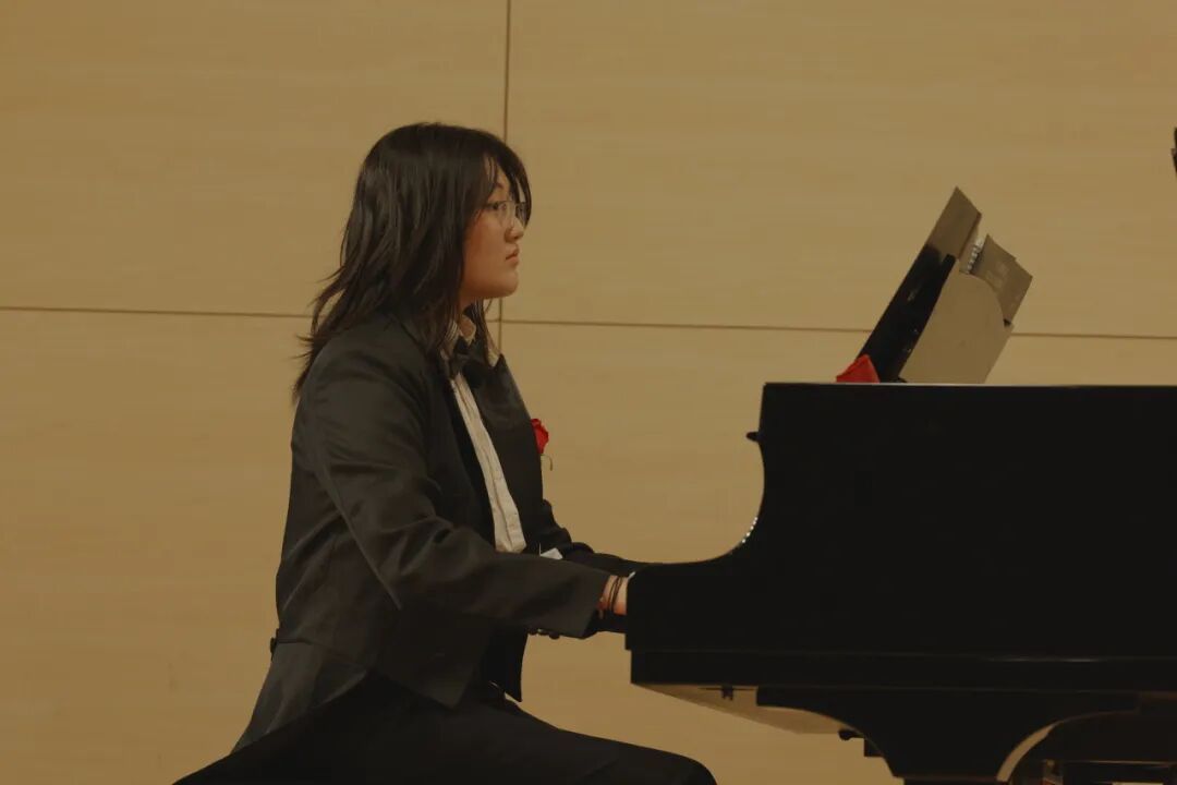 当然,音乐学人的才华并不仅仅局限于表演,在歌曲创作方面,我系学子也结出累累硕果!由我系李欣睿同学原创的流行歌曲《江城子•密州出猎》就在演出中由李欣睿本人献唱,李姗姗同学进行伴奏。在音乐学人的笔下,东方诗人的吟咏嵌合西式钢琴伴奏,厚重的历史与现代的音乐之间诞生令人耳目一新的“化学反应”。倥偬间,听众仿佛窥见千百年前苏轼“老夫聊发少年狂”的豪情。这,就是音乐学人创作能力的最佳体现!