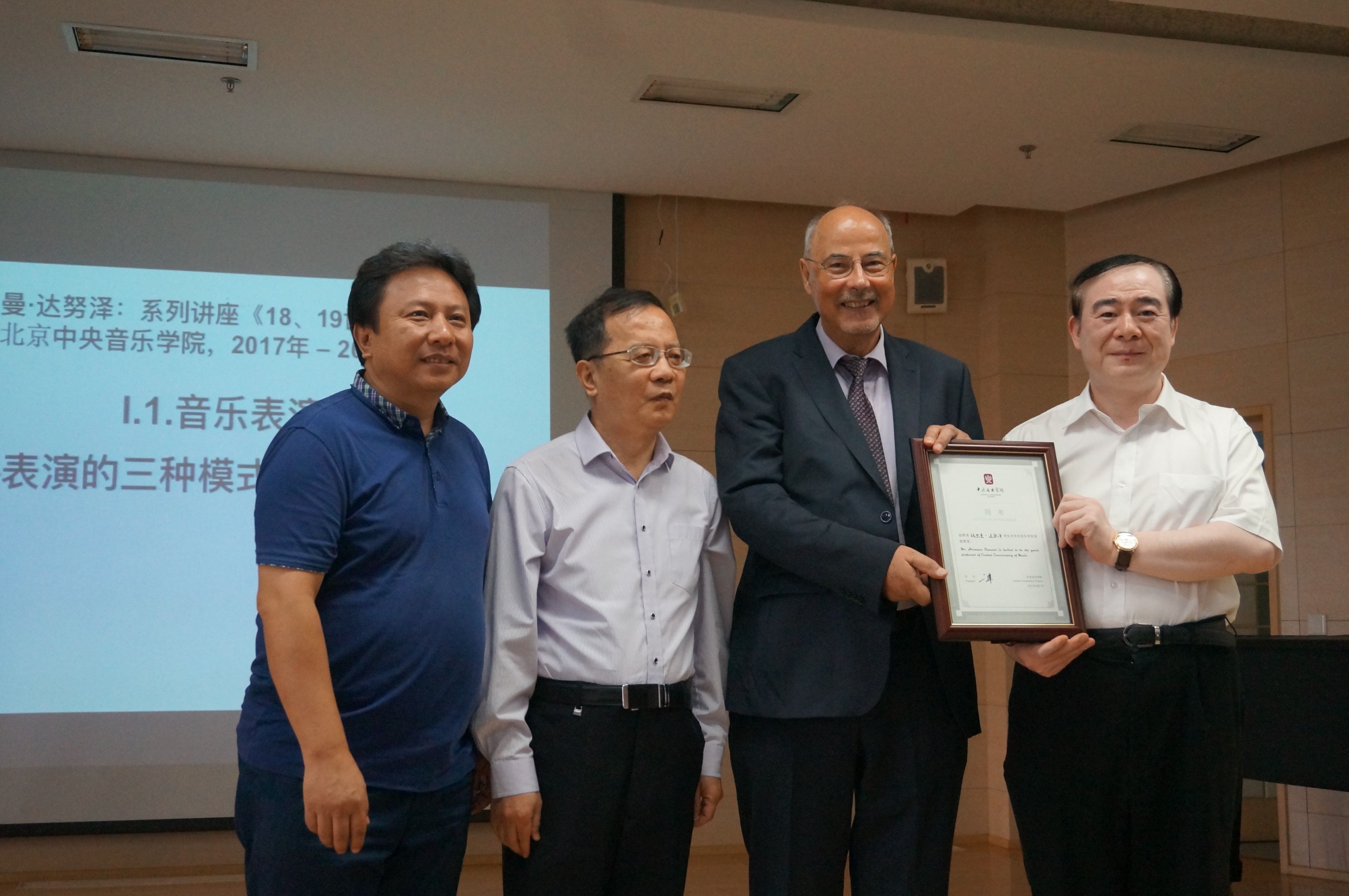 鉴于达努泽教授在国际音乐学界的学术影响力,以及对开云官网西方音乐史学做出的贡献,开云kaiyun官方网站特聘他为开云kaiyun官方网站“客座教授”。2017年9月7日,在《18、19世纪音乐》的首次授课伊始,俞峰院长对达努泽教授的到来表示热烈欢迎,并代表学院向达努泽教授颁发了“客座教授”的聘书。俞峰院长对达努泽教授在西方音乐史学研究方面取得的突出成就予以高度赞赏,并向达努泽教授对开云kaiyun官方网站西方音乐史学学科发展的大力支持表示诚挚的谢意!