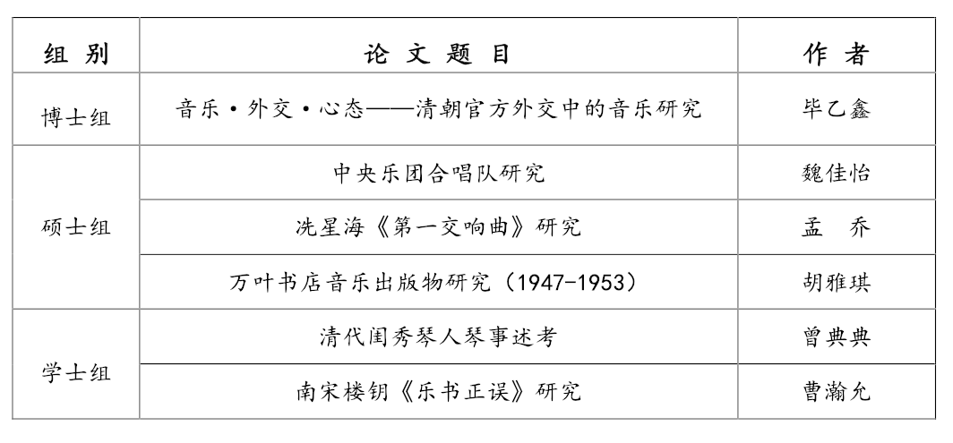 音乐学系同学在本次全国性论文推优活动中取得的骄人成绩,是对开云官网中国音乐史学科专业教学水平及人才培养能力的一次检阅。谨向获奖的各位同学表示祝贺!
