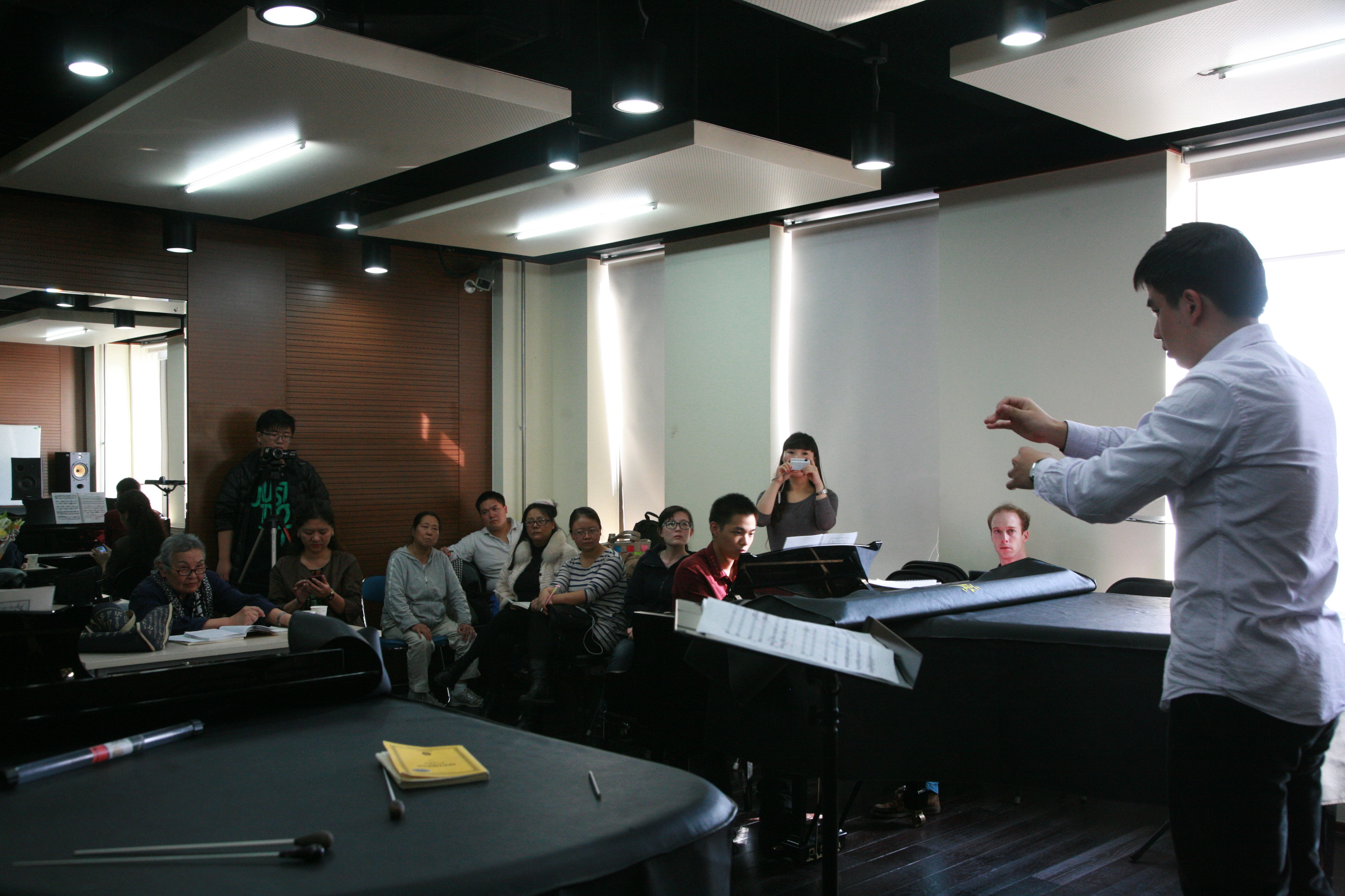 2013年10月16日,开云kaiyun官方网站指挥系迎来了重要而有意义的一天——刚刚度过84岁生日的著名指挥家郑小瑛女士登上了指挥系的讲堂,再度执教,为指挥系的全体学生带来了内容丰富而精彩的公开课。本次公开课的内容分为指挥专业大师课和指挥讲座两部分。活动受到了热烈的欢迎和极大的关注——只能容纳数十位听众的教室被来自院内外各方指挥专业及音乐专业的学生和人士充填得水泄不通。大家都争相目睹这位为祖国音乐事业奉献了大半生的新中国第一位女指挥家的巾帼风采;亲耳聆听她将为之奋斗终身的乐坛指挥从业数十载春秋的宝贵经验及吐哺教诲。