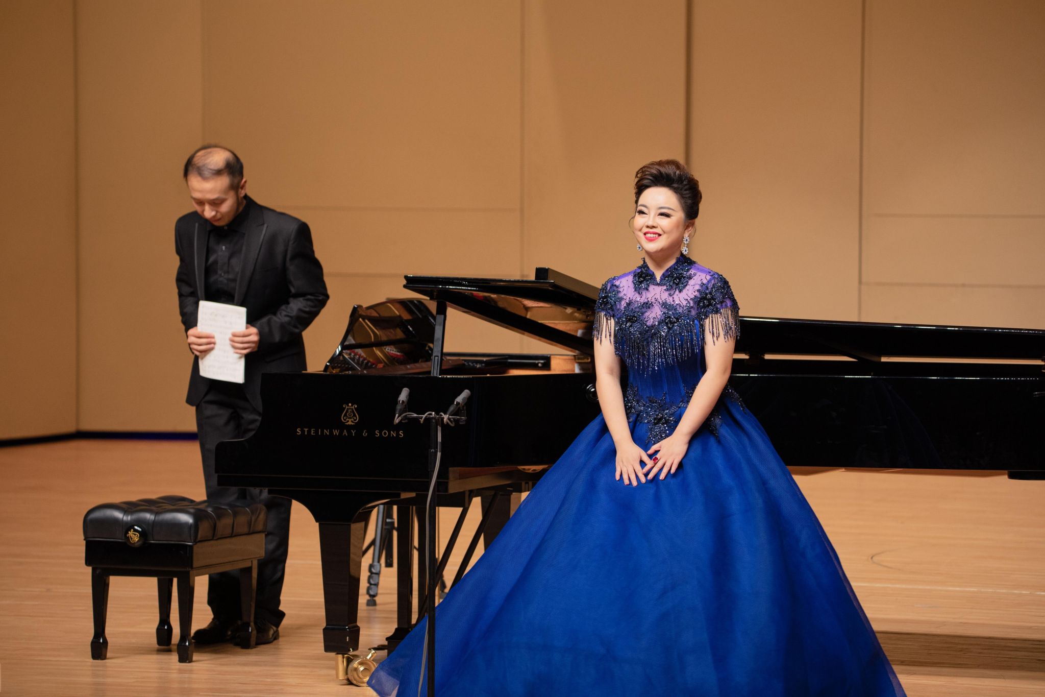 青年教师女高音张怡首先带来一首荡气回肠的《绒花》,用饱含深情的歌声亲切地表达出对英雄的赞美,女中音杨子老师将那首《祖国,我的最爱》,用自己宽厚的嗓音唱出了对祖国这片土地的热爱和自豪。