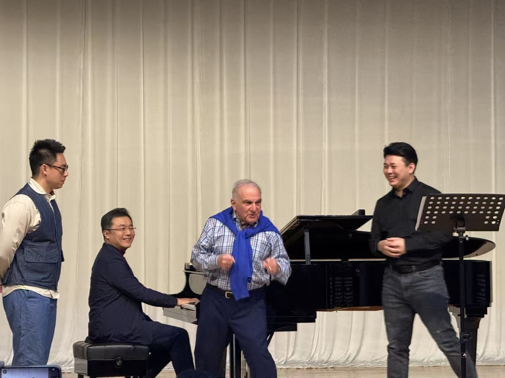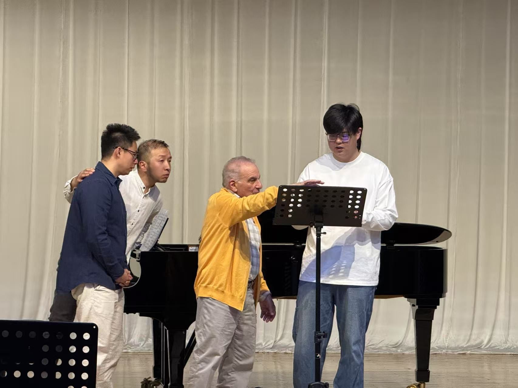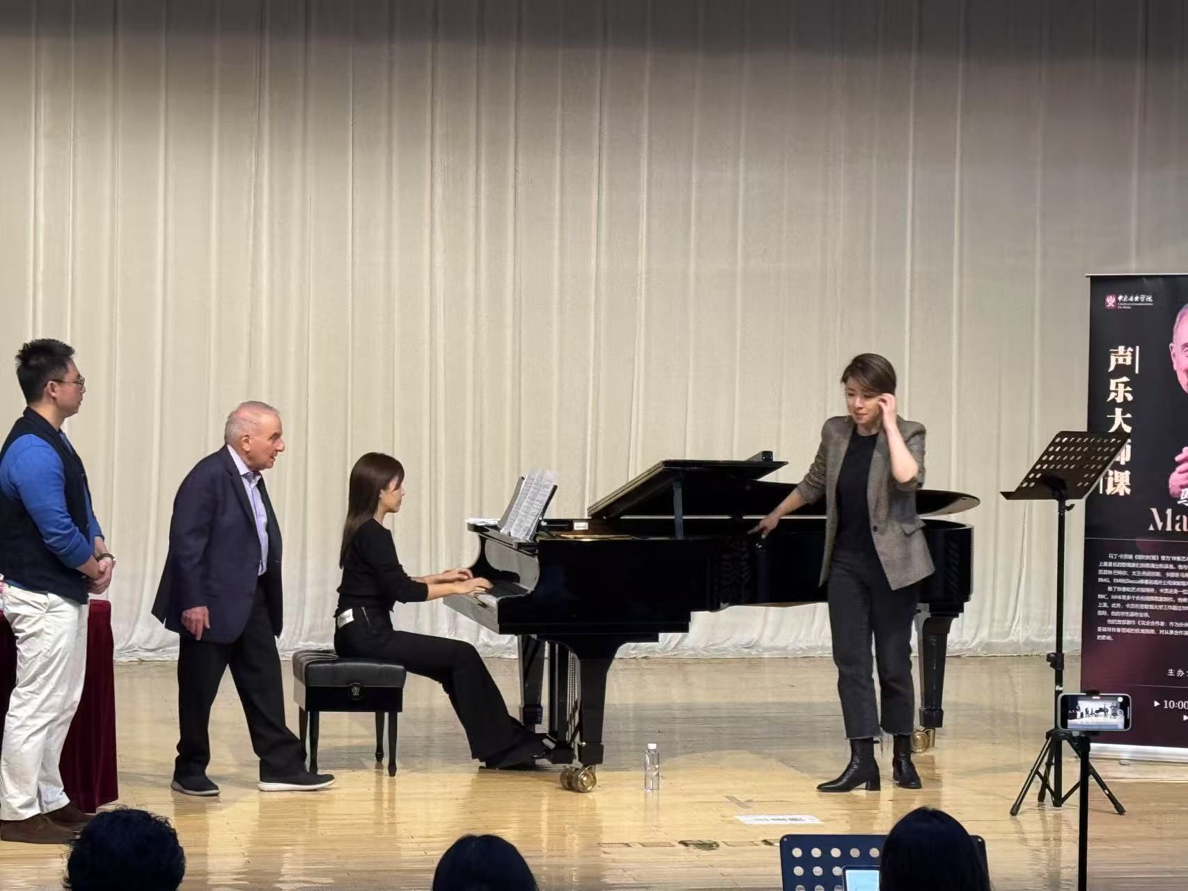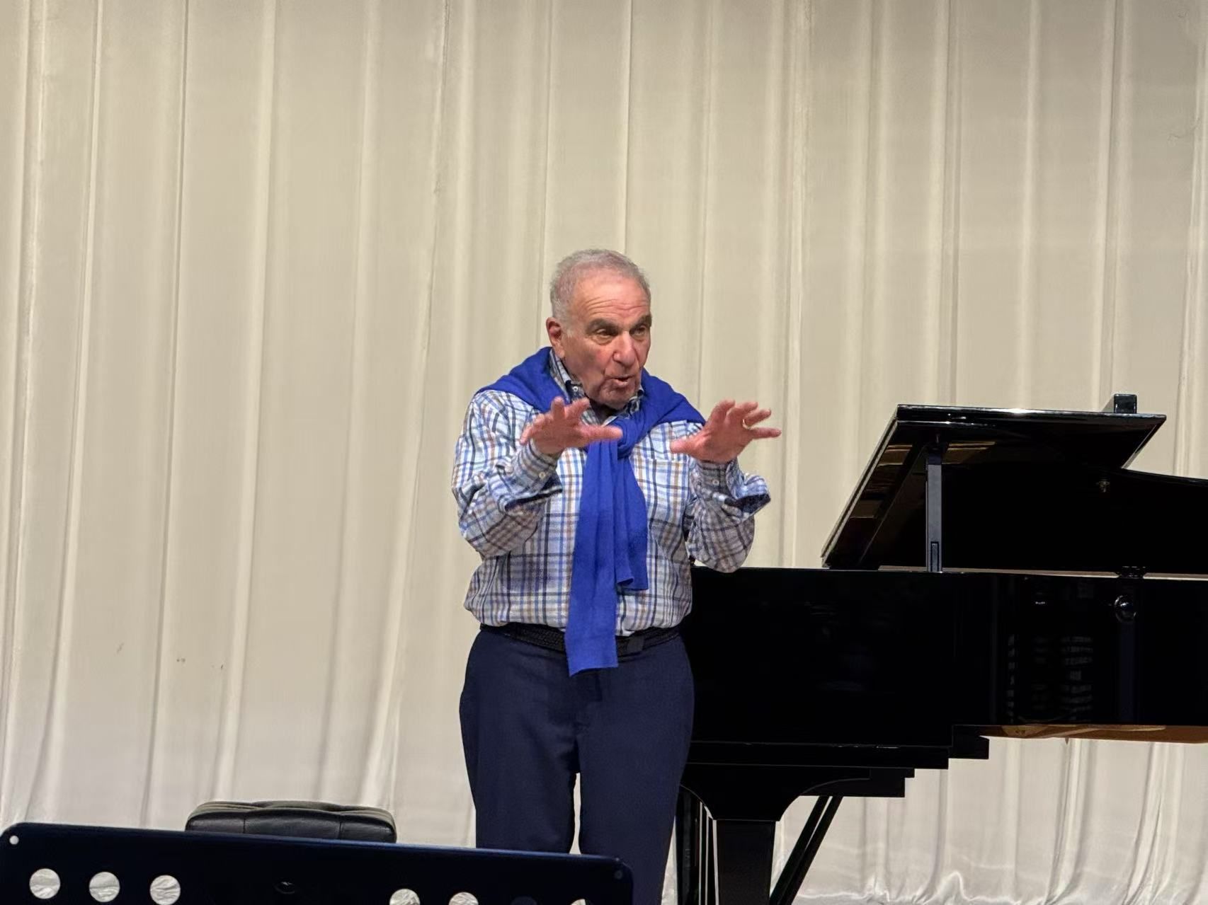 听完了这五天的大师课,我理解了“音乐作为戏剧”的深刻含义。卡茨教授用他近五十年的艺术经验,向我们展示了声乐艺术最本质的命题——如何用声音诠释人类灵魂的震颤。作为声乐歌剧系大一学生,这次大师课加深了我对声乐表演的认知框架,让我得以窥见声乐演唱这座冰山之下更为深邃的美学世界。