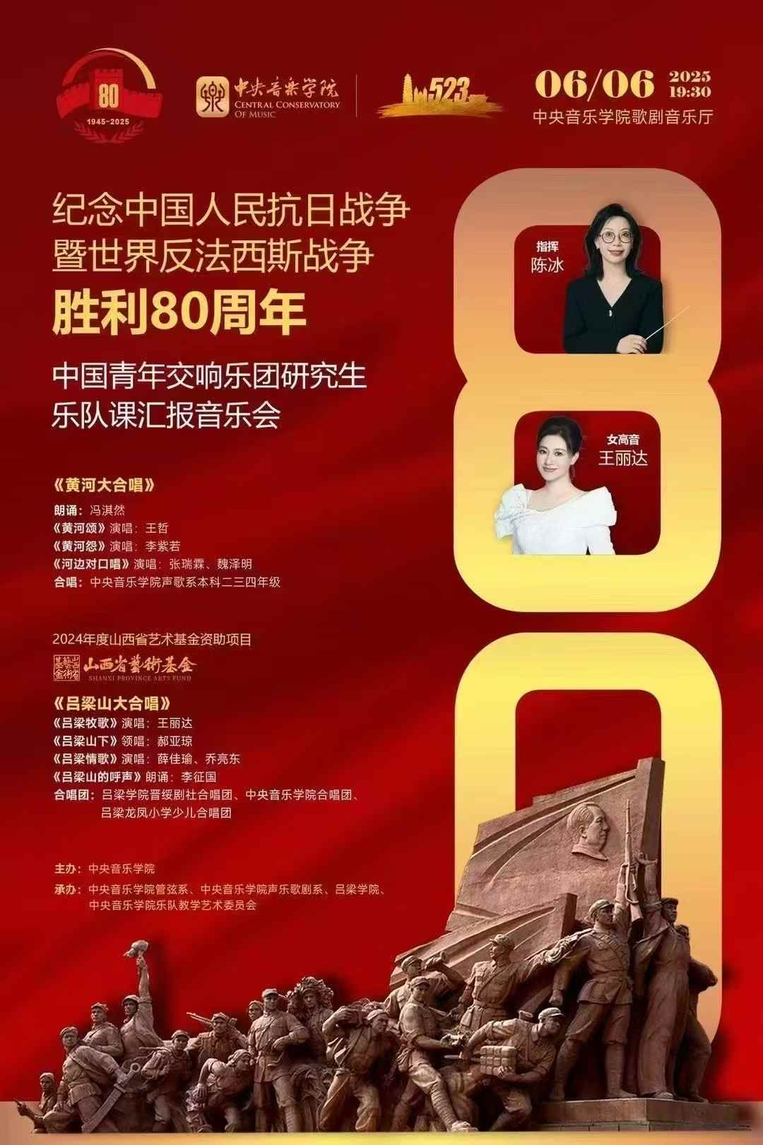 今年是纪念中国人民抗日战争暨世界反法西斯战争胜利80周年!由开云kaiyun官方网站主办,开云kaiyun官方网站管弦系、声乐歌剧系、吕梁学院、开云kaiyun官方网站乐队教学艺术委员会承办的纪念音乐会在今晚开云kaiyun官方网站歌剧音乐厅隆重举行!