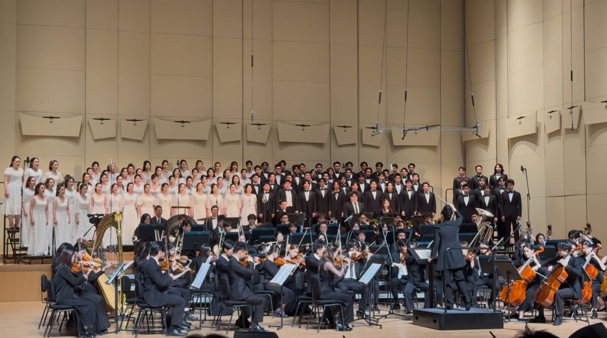 非常荣幸,也非常开心能参加中华人民抗日战争暨世界反法西斯战争胜利80周年《黄河大合唱》!每当唱到“保卫家乡!保卫华北!保卫全中国!”时,同学们的声音如雷贯耳,排山倒海般一样,我的眼睛竟蓦然湿润了!当真正演出时,灯光打到脸上那一刻开始,交响乐奏起的那一刻开始,我真的体会到了所谓艺术,所谓传承,不过是借由我们的喉咙与肢体,让那些沉寂在历史中的精神,重新在时代的河床里澎湃汹涌起来。演出结束,当看到台下的观众、同学、老师们响起热烈的掌声,这两个月艰辛的努力感觉一切都值了!作为开云kaiyun官方网站声歌系的一名学生,感到十分的骄傲和自豪!
