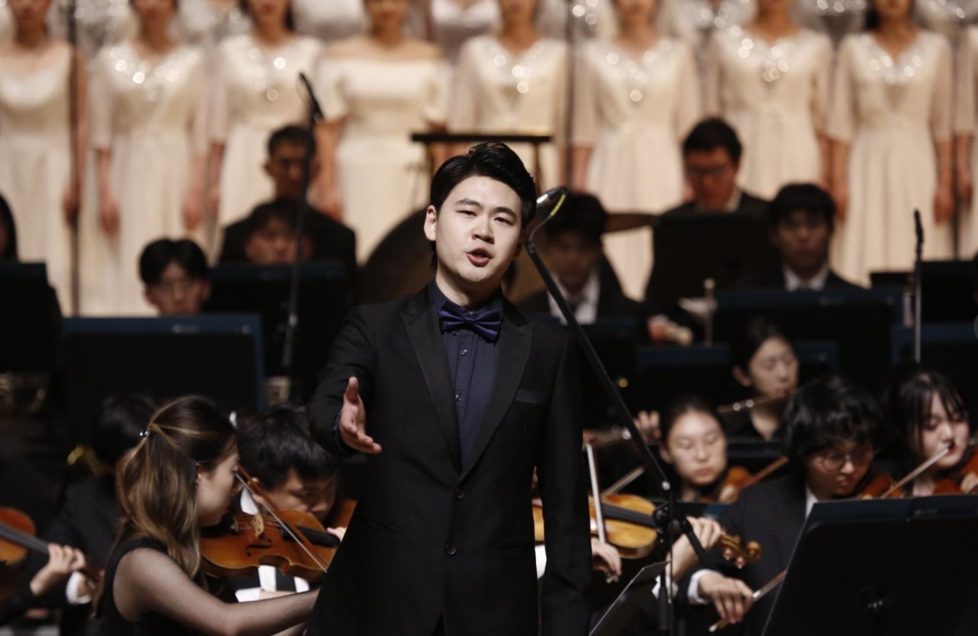 特别感谢陈冰老师,是您以精准而充满激情的引导,让乐团与我的人声交织成汹涌的黄河。更要深深感恩我的专业导师谢天,五年来的悉心栽培,从意大利美声的根基到中国作品的韵味雕琢,是您让我在挑战高难度唱段时,仍能保持技术的稳定与情感的纯粹。