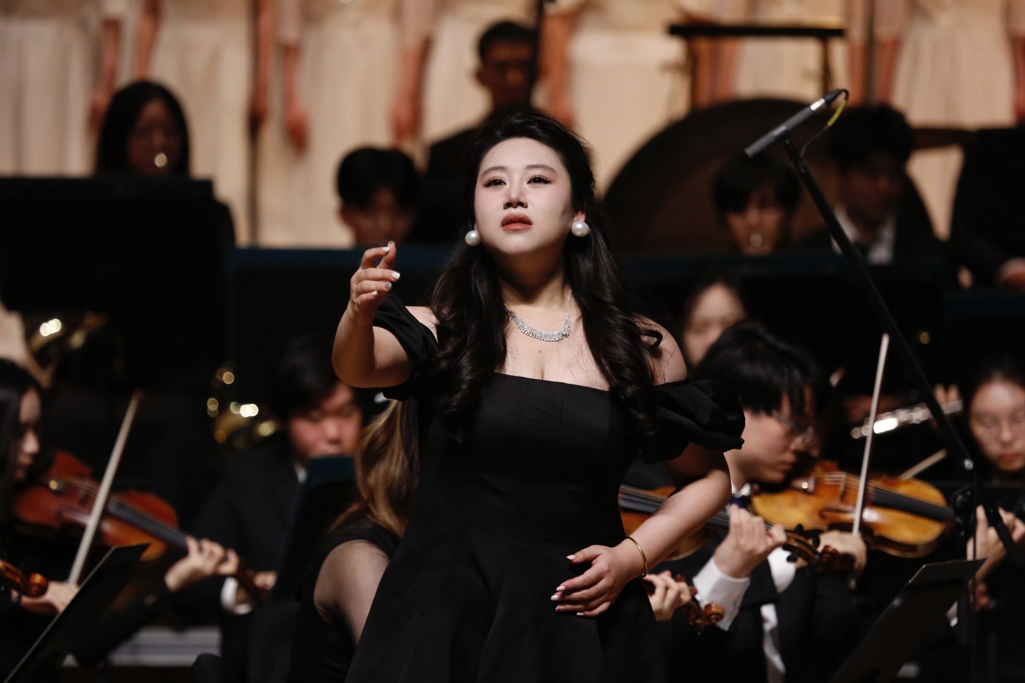 昨晚,当舞台灯光亮起,当七十人编制的交响乐团在我身后奏响第一个音符时,我的心脏几乎与定音鼓同频震颤。作为声乐歌剧系的学生,第一次以女高音独唱的身份站上交响乐团的“浪尖”,诠释《黄河怨》里那位饱受苦难的母亲,仿佛灵魂被揉进了历史的褶皱。