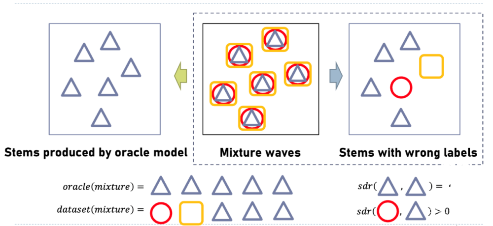 本次比赛分为三个赛道,其中,赛道A为标签噪声场景下的音乐声源分离。在该场景中,数据标注中可能存在错误标签,例如“人声”轨道被错误的标注成“鼓”轨道,导致模型学习了错误的数据,严重影响模型的性能,是该领域的重要挑战之一。