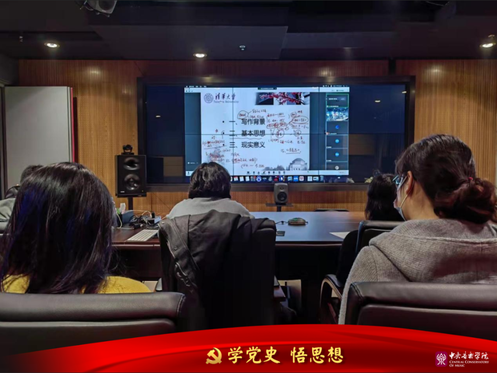 接下来,由我们央音音乐人工智能系学生党支部分享了由支部党员孙宇明、刘韧等同学参与制作的红色经典作品《万泉河水清又清》,这部作品是今年央音师生参加北京市教工委、市教委组织的“唱支歌儿给党听”百万师生网络歌咏比赛中获得特等奖和最佳人气奖的作品。