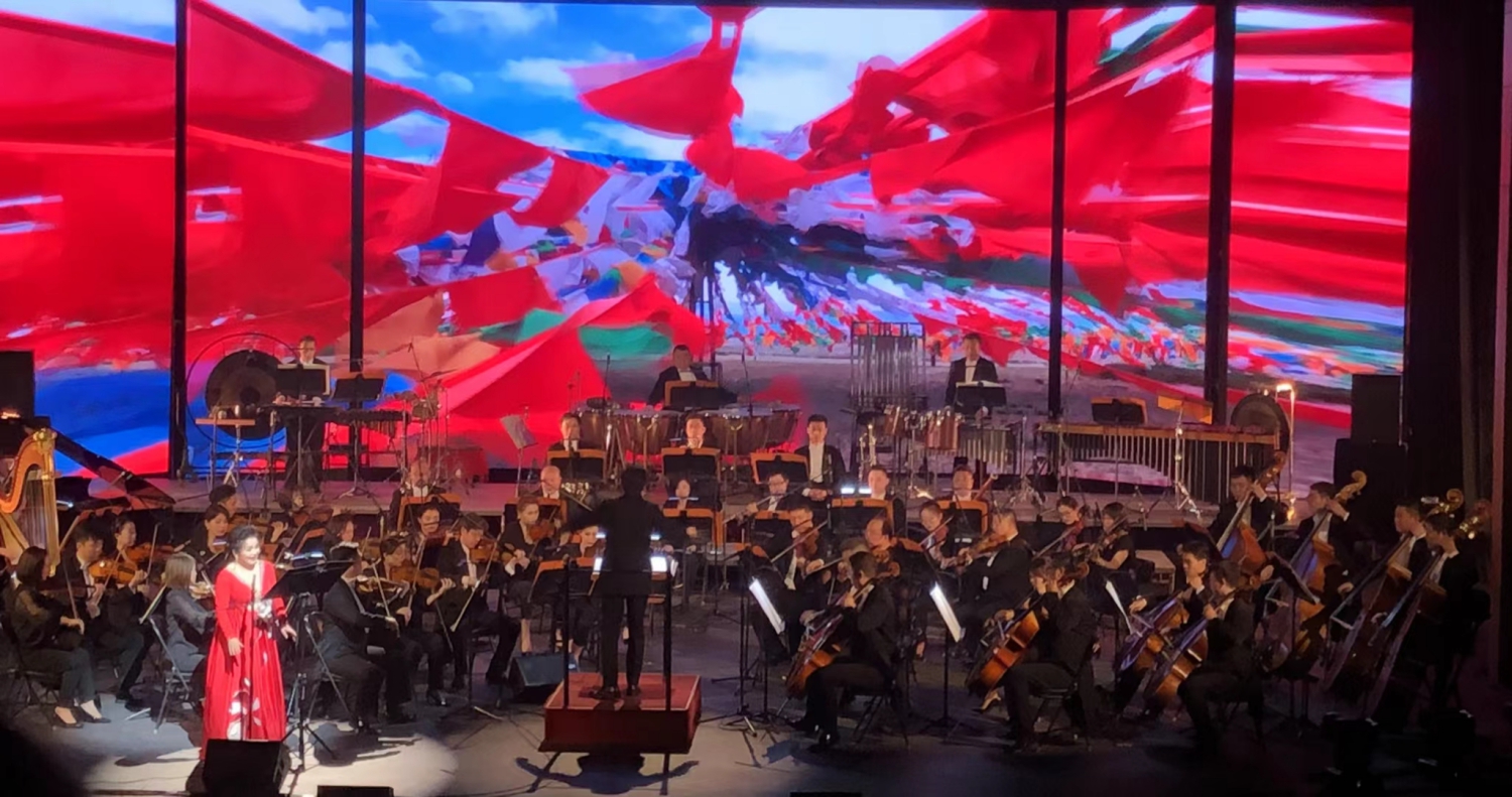 【梵天净土】多媒体交响乐套曲由《诺日朗》《风马旗》《雅鲁藏布》三部多媒体交响乐构成,先后获得国家艺术基金2016和2019年度大型舞台艺术作品项目的两次资助而进入打造精品阶段,该作品2011版北京首演则是作曲家张小夫教授用经典交响音乐形式与电子音乐、视觉影像、舞台设计、灯光造型等多媒体技术相结合讲述中国故事的最新作品。经多年来不断的修改和提升,在众多艺术家的精诚协作、倾情演绎下呈现出新的审美高度;作品在融合了全新的24声道全景声的音响系统,超高清LED多媒体屏幕呈现了巨幅视觉影像,为观众带来了全新的沉浸式的“视听一体化”的超凡体验。作曲家融合了藏族原生态音乐与现代电子音乐声音,创造了一种全新的原生态音乐元素与交响乐和电子音乐元素相融合的声音组合方式,为观众呈现了一幅幅深远、蓬勃、悠长且待人寻味的交响画卷,这种全新的沉浸式音乐会演出越来越受到当下年轻人的欢迎,引发了新一波对现代音乐如何走向社会大众的探讨。