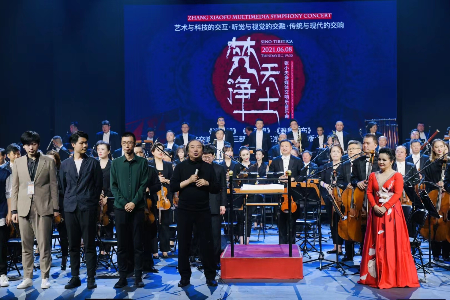 6月8日晚,一场别开生面、令人耳目一新的【梵天净土】——张小夫多媒体交响乐音乐会在北京天桥艺术中心隆重上演,天津交响乐团、指挥家金野,著名歌唱家吴碧霞,青年打击乐演奏家尹飞、刘畅、董羿琳加盟演出,联袂为首都观众呈现了这场充满高科技色彩的交响乐视听盛宴。