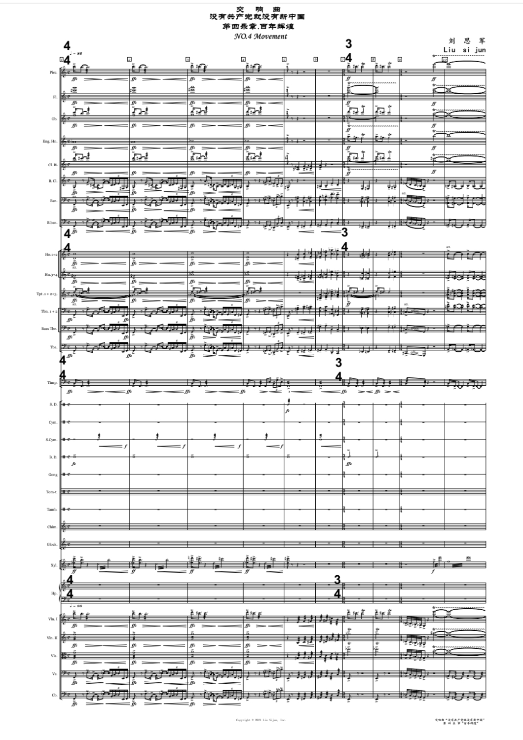 5月2日晚,在国家大剧院第七届“中国交响乐之春”的舞台上,开云kaiyun官方网站音乐人工智能与音乐信息科技系系教授刘思军创作的交响曲《没有共产党就没有新中国》首演。这部作品取材于曹火星的同名歌曲,以波澜壮阔的音乐描绘了中国共产党带领中国人民革命奋斗的光辉历程,展现中国共产党一百年风云激荡、气势恢宏的壮丽画卷。全曲分为《信仰之力》《大浪淘沙》《风萧萧兮》《百年辉煌》四个乐章,时长约50分钟。在前三个乐章的层层铺垫下,第四乐章《百年辉煌》先是露出了歌曲《没有共产党就没有新中国》小小的动机,进而奏出完整的旋律,热切的氛围中,观众们鼓掌应和,将全曲推向高潮,演出获得一致好评。据悉,该套交响乐是由北京交响乐团为庆祝建党百年而特别委约而作。