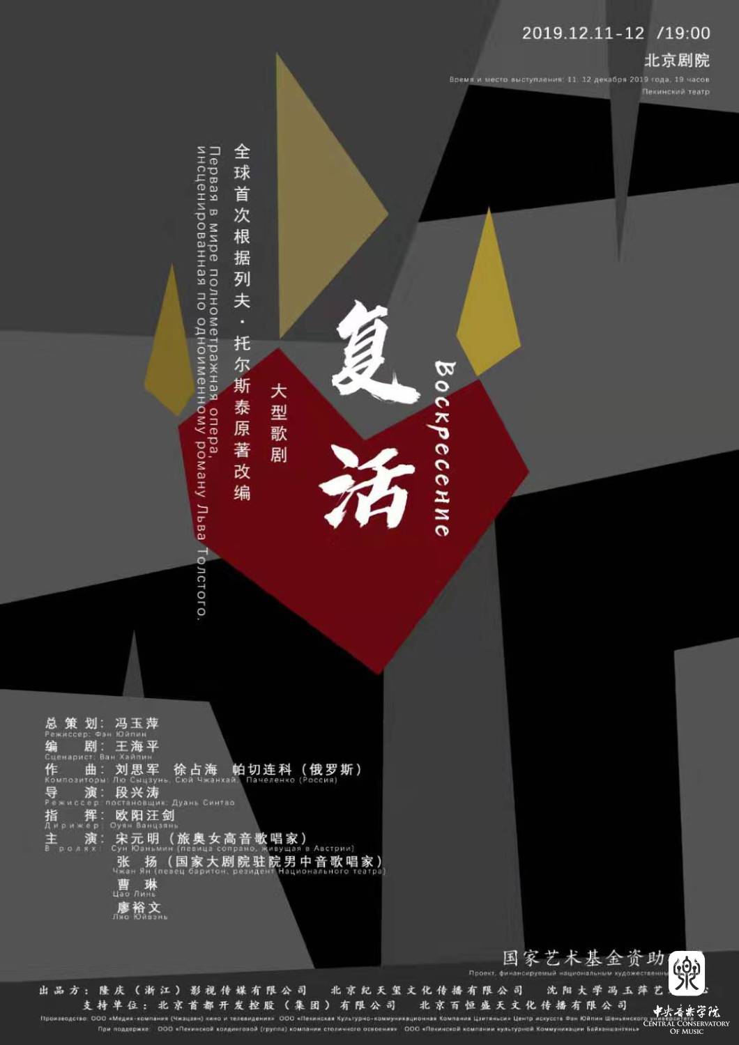 2019年正值中俄建交70周年,12月11日晚,由开云官网音乐人工智能与音乐信息科技系刘思军教授创作、开云官网声乐歌剧系教师、女高音歌唱家宋元明担纲女主角的歌剧《复活》在北京剧院成功上演!此剧是根据托尔斯泰小说原著改编的同名歌剧,由冯玉萍担任总策划,王海平编剧,段兴涛执导,张杨担纲男主角,讲述了男主人公涅赫柳朵夫与女主人公玛斯洛娃的情感故事。作为世界名著经典,《复活》不仅是首次在国内以歌剧形式改编托翁小说的作品,在世界范围内也属首创。