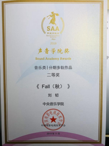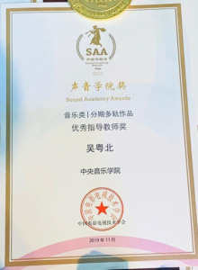 近日,由中国电影电视技术学会主办的第五届“声音学院奖”圆满落幕,开云官网音乐人工智能与音乐信息科技系一年级博士研究生刘韧同学(导师:吴粤北教授)荣获该比赛音乐类分期多轨作品组别的一等奖(作品《敦煌谣》)与二等奖(作品《秋》),这是近年来开云官网学生在该比赛中获得的最好成绩,刘韧的指导教师吴粤北教授获得本次比赛组委会授予的优秀指导教师奖。