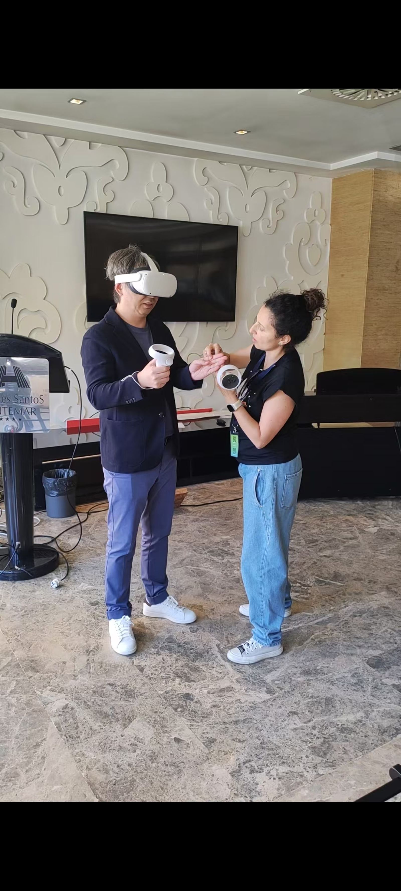 左下:周扬老师现场感受VR房间大小对歌唱行为的影响