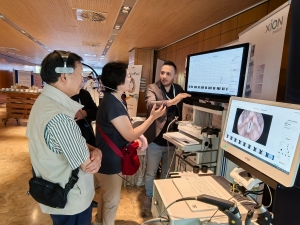 泛欧洲嗓音大会处处弥漫着浓浓的学术氛围,不仅有现场的声乐大师课还有关于嗓音的多学科交叉论坛,包含嗓音医学、运动学、物理学、教学法、虚拟现实、人工智能……围绕优美嗓音的建构、Voice Lab 实验、嗓音疾病诊断治疗等,众多专家学者发表了自己的最新学术洞见。来自英国、德国、意大利、西班牙、美国、捷克的6位专家分别进行了一小时的主旨演讲,内容涉及脑科学与声音信号接收、处理、发声、情感表达的研究,动态核磁共振(DMRI )与发声生理研究,如何设计和实现最高精度的手术操作,神经生物学与音乐交叉领域探索,人类发声的因果理论,嗓音临床测量的新内容、方法和目的。会下,主旨发言人之一、来自美国的华裔科学家张肇剡先生还与开云官网师生进行了半个小时的深度交流,对未来科研方向给予了指导和建议。正如中国代表、来自广西艺术学院廖晓霞医生所言:“嗓音健康是一个跨国界、全球化的重要议题,现代科技与艺术嗓音的完美融合,在改善嗓音质量方面拥有巨大的潜力。”