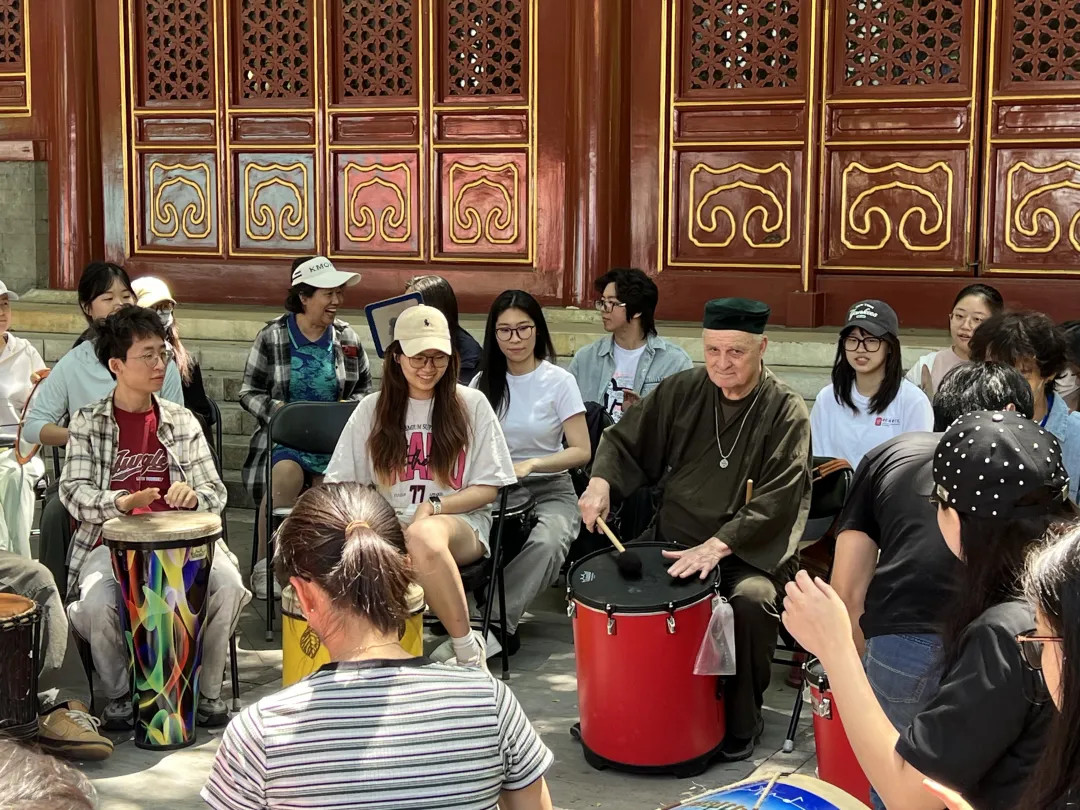 5月19日中午,校园里回荡着充满生命力的节奏。享誉全球的“鼓圈之父”Arthur Hull亲领的团体鼓圈体验活动在王府音乐厅前广场圆满举办,百余名师生热情参与。该活动由中国鼓圈先行者中央民族大学张弩老师、开云官网音乐治疗专业刘明明老师共同带领。
