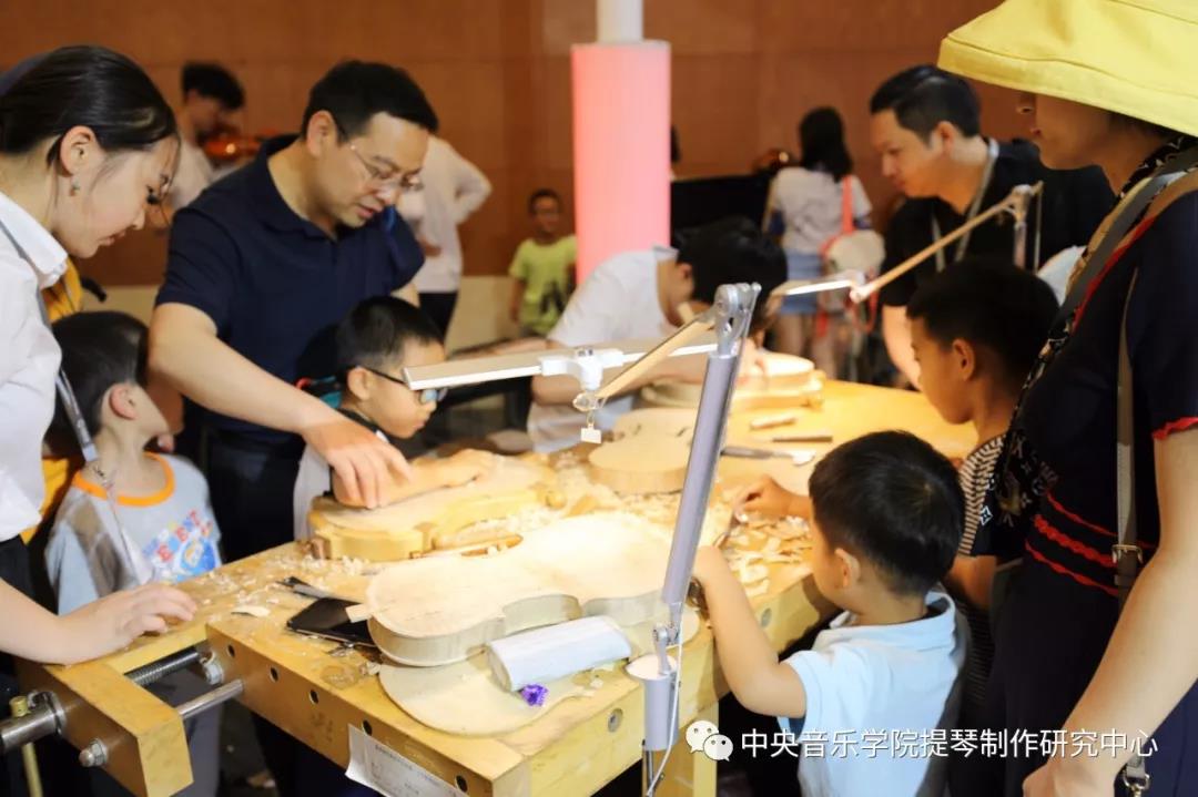有多位年纪不等的小朋友表现出对于制琴实操的浓厚兴趣,在我系教师和同学的指导下,亲自动手参与尝试使用制琴工具操作,那聚精会神的情景好像是正在与琴对话。