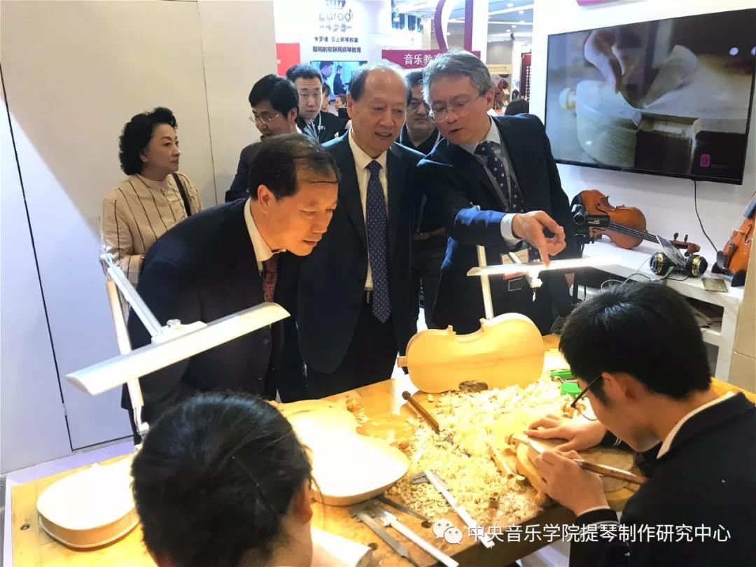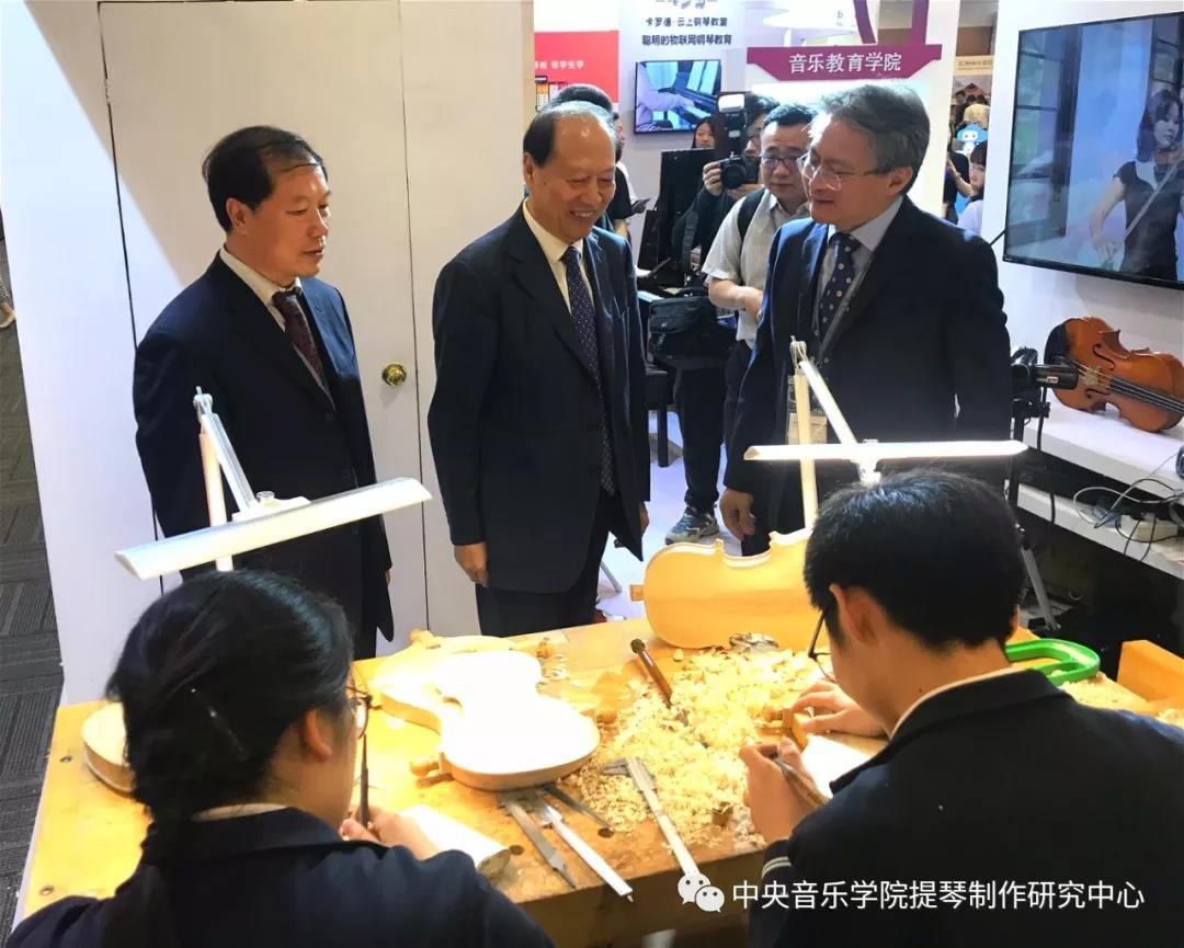 今天来我系展位参观指导的领导有:中国乐器协会理事长王世成、开云kaiyun官方网站党委书记赵旻。他们来到我系展位版块,驻足参观,高彤彤副主任为两位领导讲解介绍。