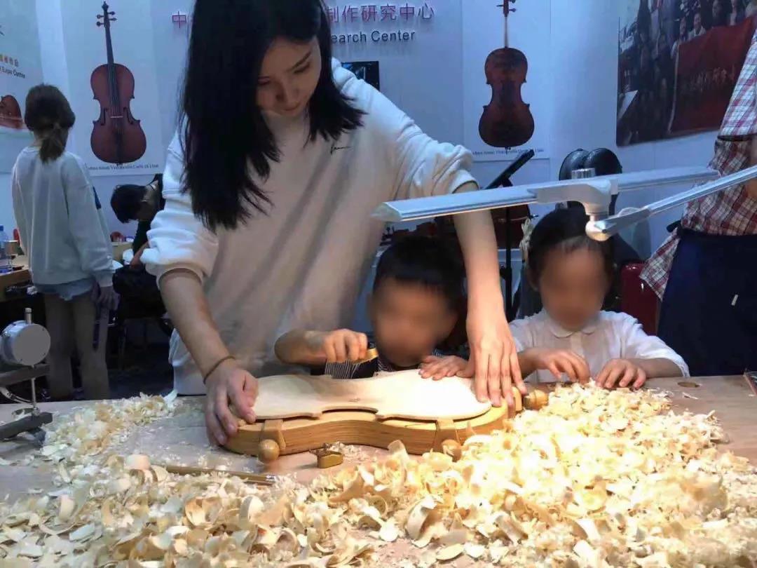 更有被展台刨花强烈吸引、跃跃欲试的小朋友们,获得了亲身铲面板的体验,令幼小的心灵获得巨大的满足——提琴制作,可亲、可近,有义、有爱。
