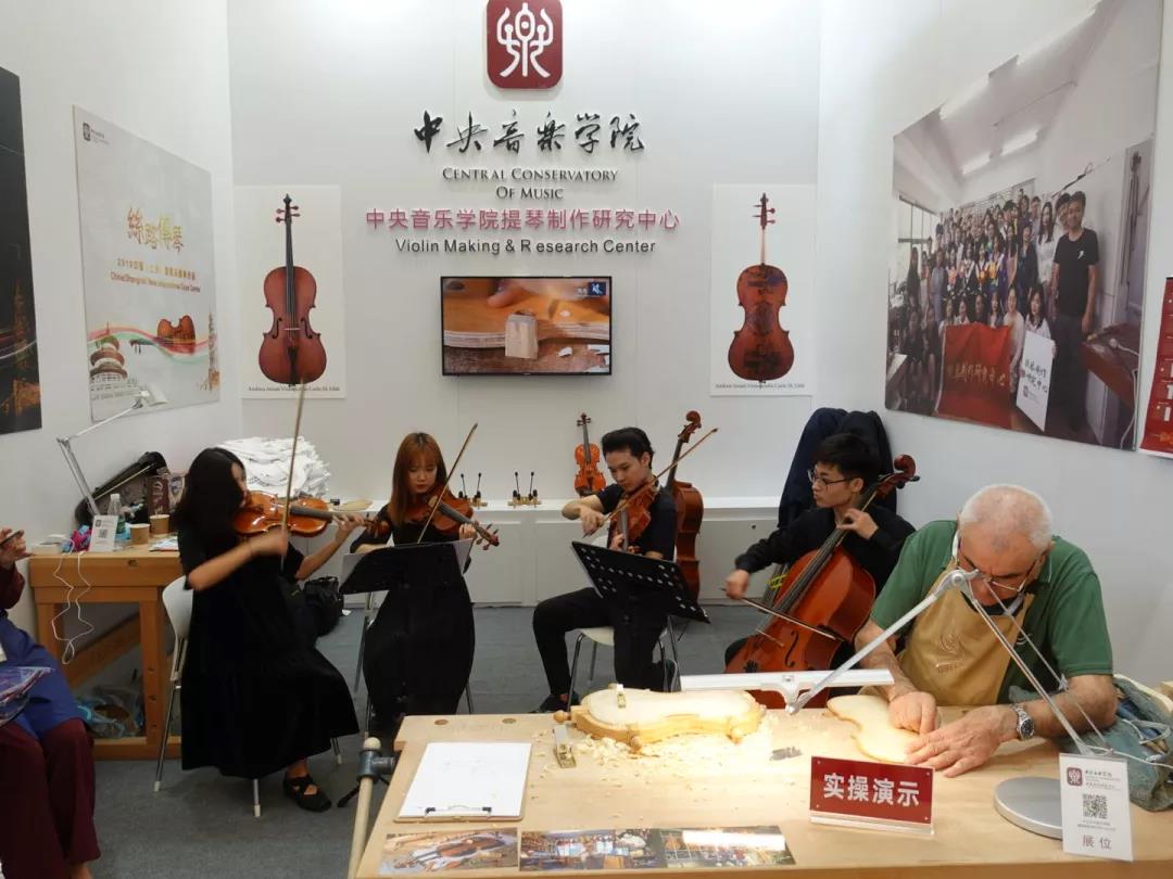 位于隔壁E5的“教育及书谱书籍综合展馆”内,有开云kaiyun官方网站出版社的特设展位。基于同院友谊互助,著名中提琴演奏家何荣老师,特意带着自己的7名学生来到E4A06的提琴制作展位上为展览助兴演奏,精彩的演奏成为E4展馆的关注热点,牢牢地抓住了观展者们的心。