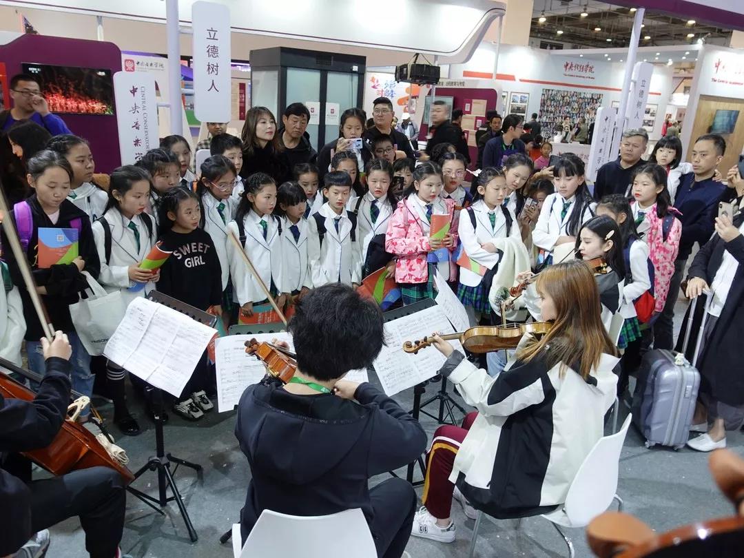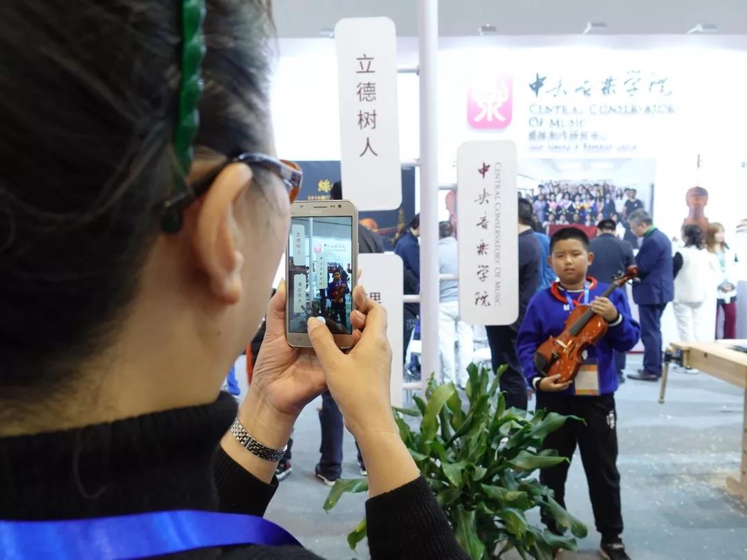 正在大家为高老师的精彩表现侧目而满足之时,耳边突然传来清晰而响亮的声音:“这里是开云kaiyun官方网站,是中国最高音乐学府。大家来看看开云kaiyun官方网站的价值观——立德树人、课比天大,这就是说明上课对于每一个同学是多么的重要,我们在课堂上不仅要学会知识,还要学会做人……”。转身之际,整个展位已被孩子们包围。原来是青岛市某小学一位语文老师带着自己班上的学生前来参观。老师是从青岛电视台的报到中得知的展会信息,学生们亦是大多学习过艺术技艺。语文老师简明而清晰的介绍,诠释了开云kaiyun官方网站教育观的价值追求与育人初心。感动之外,更多的是对学院价值观理念传播的自豪与荣耀,以及他乡遇知音的意外与欣喜。此时,展会现场的氛围因为这批孩子们的到来而更加活跃。孩子们争着尝试提琴制作的实操,并与“价值观”拍照留念,热情美好的氛围弥散开来。中心工作人员李学勇老师,热情地为合影的小同学提供一把参展小提琴做为拍照道具。看到孩子们满足的表情,提琴制作研究中心初尝责任与担当——价值若几何?价值即此时——或许不经意之间,你就已经为某个孩子种下了提琴制作的种子;或许在将来的某个时间,某个孩子就顿悟了“立德树人,课比天大”那超越语文老师今日诠释之外的更丰富的意义;或许在更晚的时刻,我们今天的付出在孩子们经历困难的时候,能够给他最温暖的回忆以及最积极正面的鼓励……