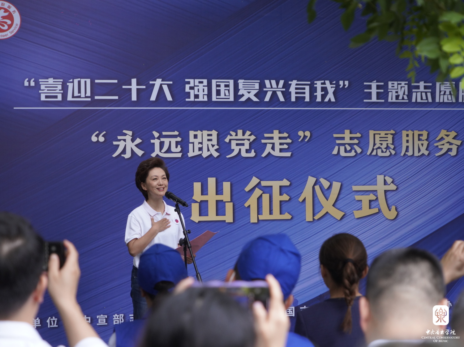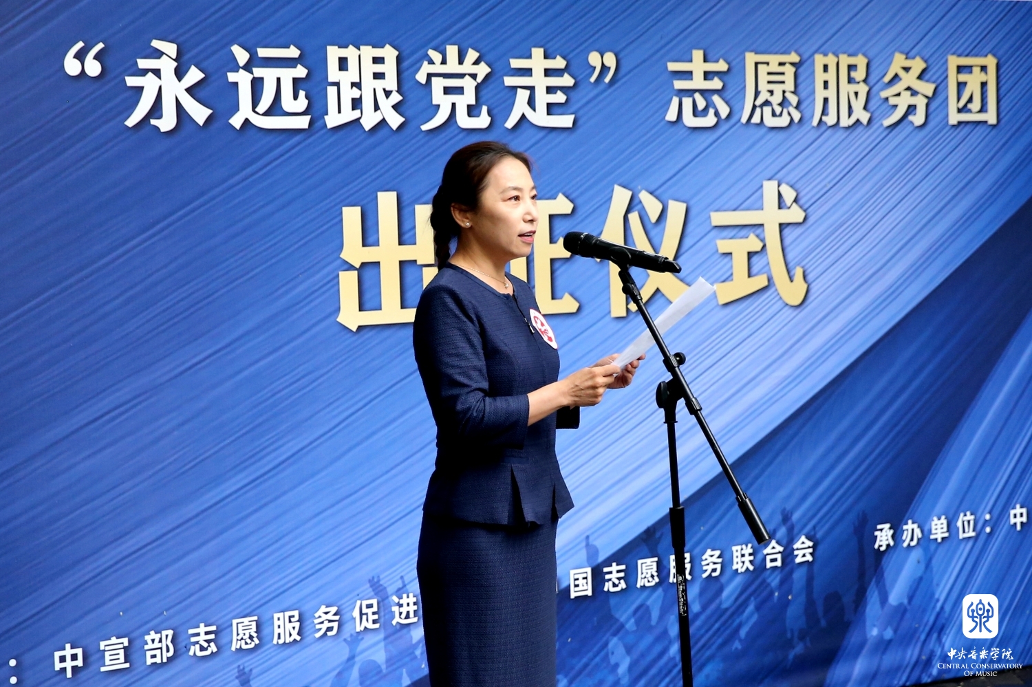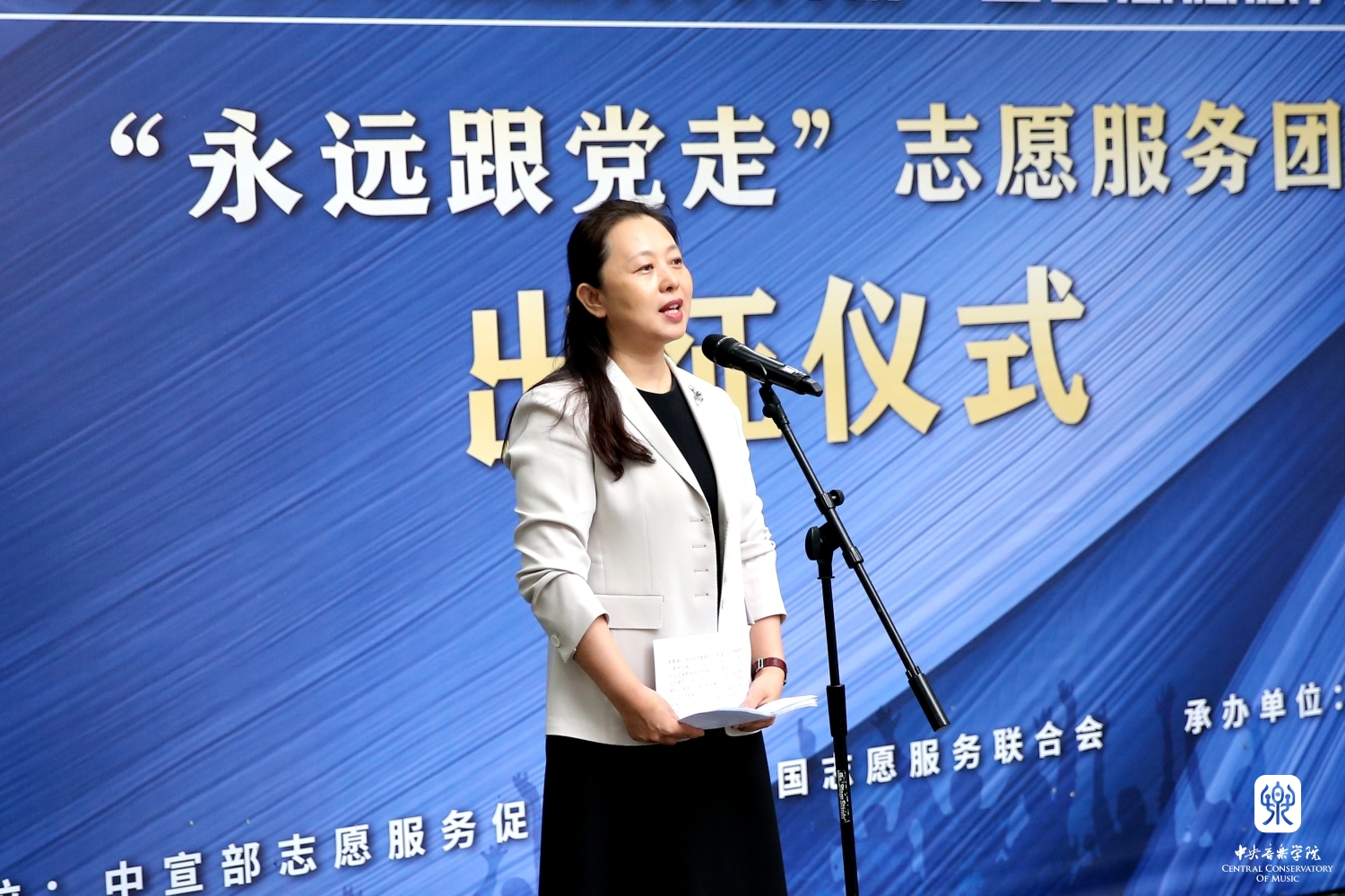 中央文明办二局副局长、中宣部志愿服务促进中心主任、中国志愿服务联合会常务副秘书长邓丽娟讲话。她表示,党的十八大以来,以习近平同志为核心的党中央高度重视志愿服务工作。今年,是进入全面建设社会主义现代化国家、向第二个百年奋斗目标进军新征程的重要一年,我们党将召开第二十次全国代表大会。今年7月,又适逢习近平总书记视察西藏一周年。在这个背景下,将“喜迎二十大 强国复兴有我”主题志愿服务活动的首场活动放在西藏举办,意义重大,使命光荣。她对大家提出了几点希望:一是要在贯彻落实习近平新时代中国特色社会主义思想中进一步增强民族共同体意识,二是要在增进民生福祉中大力弘扬志愿精神,三是要在服务过程中做好自身防护。她对开云kaiyun官方网站热情参与文艺志愿服务,大力支持中国志愿服务联合会工作,特别是为此次出征仪式提供的帮助表示衷心感谢,同时向冒着酷暑、放弃休假,主动加入志愿服务团的各位医疗专家、文艺师生、运动员、主持人、新闻记者表示衷心感谢,最后,预祝此次西藏志愿服务首场活动圆满成功。