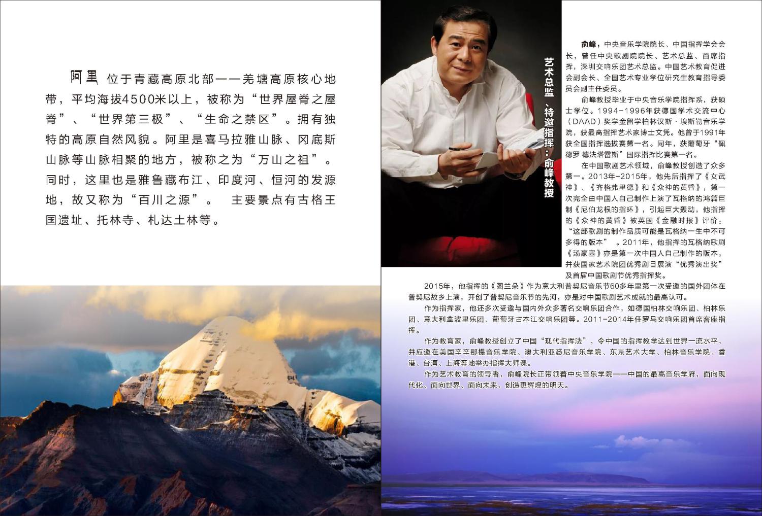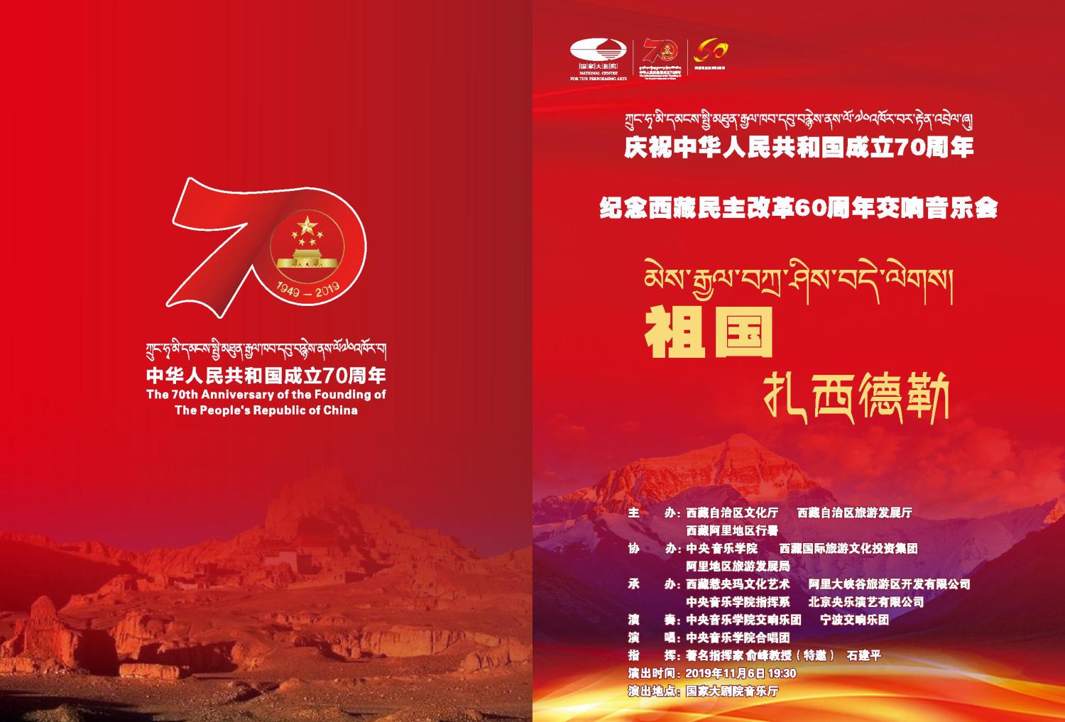 交响音乐会《祖国,扎西德勒》是由西藏自治区文化厅、开云kaiyun官方网站、西藏国际旅游文化投资集团、西藏惹央玛文化艺术有限公司为庆祝中华人民共和国成立70周年、西藏民主改革60周年共同出品的。本次音乐会特邀开云kaiyun官方网站院长、著名指挥家、俞峰教授亲自担纲指挥,携手西藏籍著名歌唱家丹增、巴桑和青年歌唱家次仁央宗、罗珍和青年指挥家石建平共同为大家呈现一台精彩的音乐盛宴。
