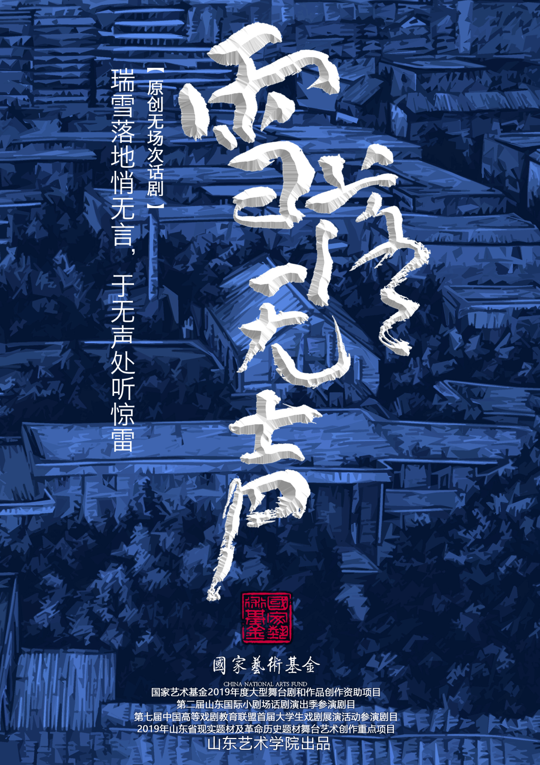 话剧《雪落无声》于2018年12月获批为国家艺术基金2019年度大型舞台剧和作品创作资助项目,是本年度唯一一部由高校作为创作主体并申报成功的话剧作品。自获批立项以来,全体主创人员拧紧了弦、卯足了劲,以极大的热忱,全身心的投入到作品排演之中,努力为观众奉献一部高质量的精品之作。该剧于2019年6月成功首演,之后便开启了巡演之路。回顾作品整个创排和巡演的过程,可谓是亮点多多。