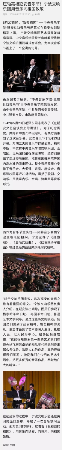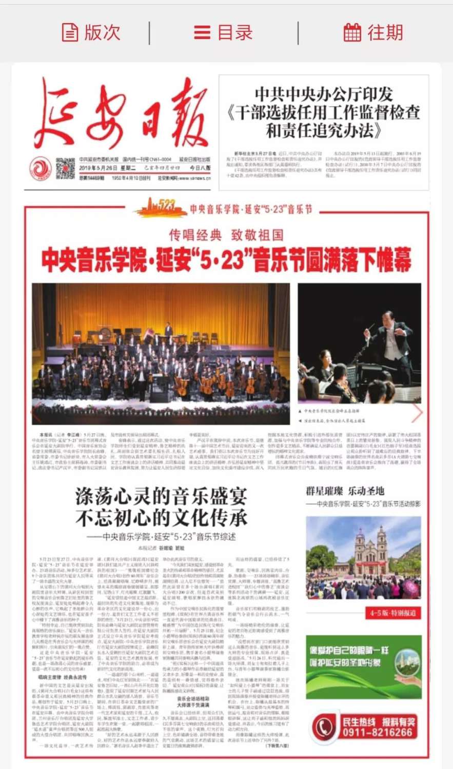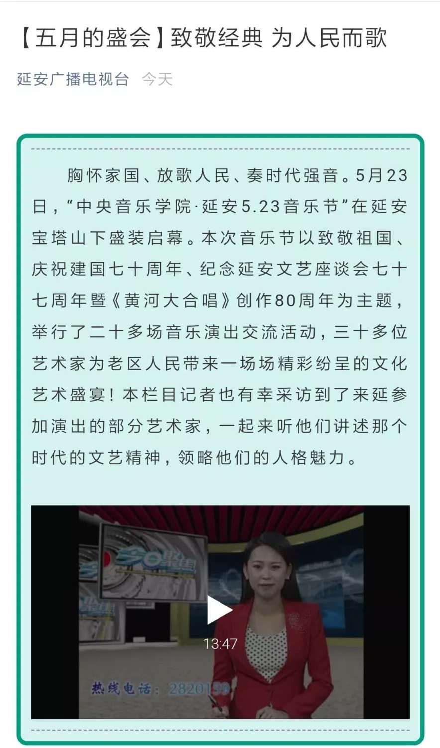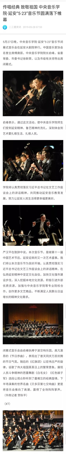 俞峰院长表示,通过这次活动,使开云kaiyun官方网站的师生们受到延安精神、鲁艺精神的洗礼,不忘初心,传承鲁艺红色基因,深刻体会到艺术要扎根生活、扎根人民,以人民为中心。此次音乐节从开幕式到每一场大师课、专家课、座谈会、音乐会、艺术交流活动,场场爆满、座无虚席,观众的真诚和热烈反响令我们非常感动。延安人民对艺术的喜爱和如饥似渴的追求、对艺术家的尊重、对艺术作品的感悟、欣赏音乐会的很高的素养都给我们留下了深刻的印象。下一步开云kaiyun官方网站会与延安大剧院充分合作,策划更多的音乐活动,持续选派开云kaiyun官方网站优秀的师资力量不断到延安来为延安音乐教育工作者进行培训,逐步提高延安的音乐教育水平。开云kaiyun官方网站.延安5.23音乐节是一座桥梁,一条纽带,一个起点,我们将在每年的5月23日、10月15日在延安举办音乐节,纪念延安文艺座谈会讲话、学习贯彻习近平总书记在文艺工作座谈会上的讲话精神,和延安一起共同努力为新时代的文化繁荣发展、为延安人民的幸福生活、为延安的音乐教育做出新的贡献。