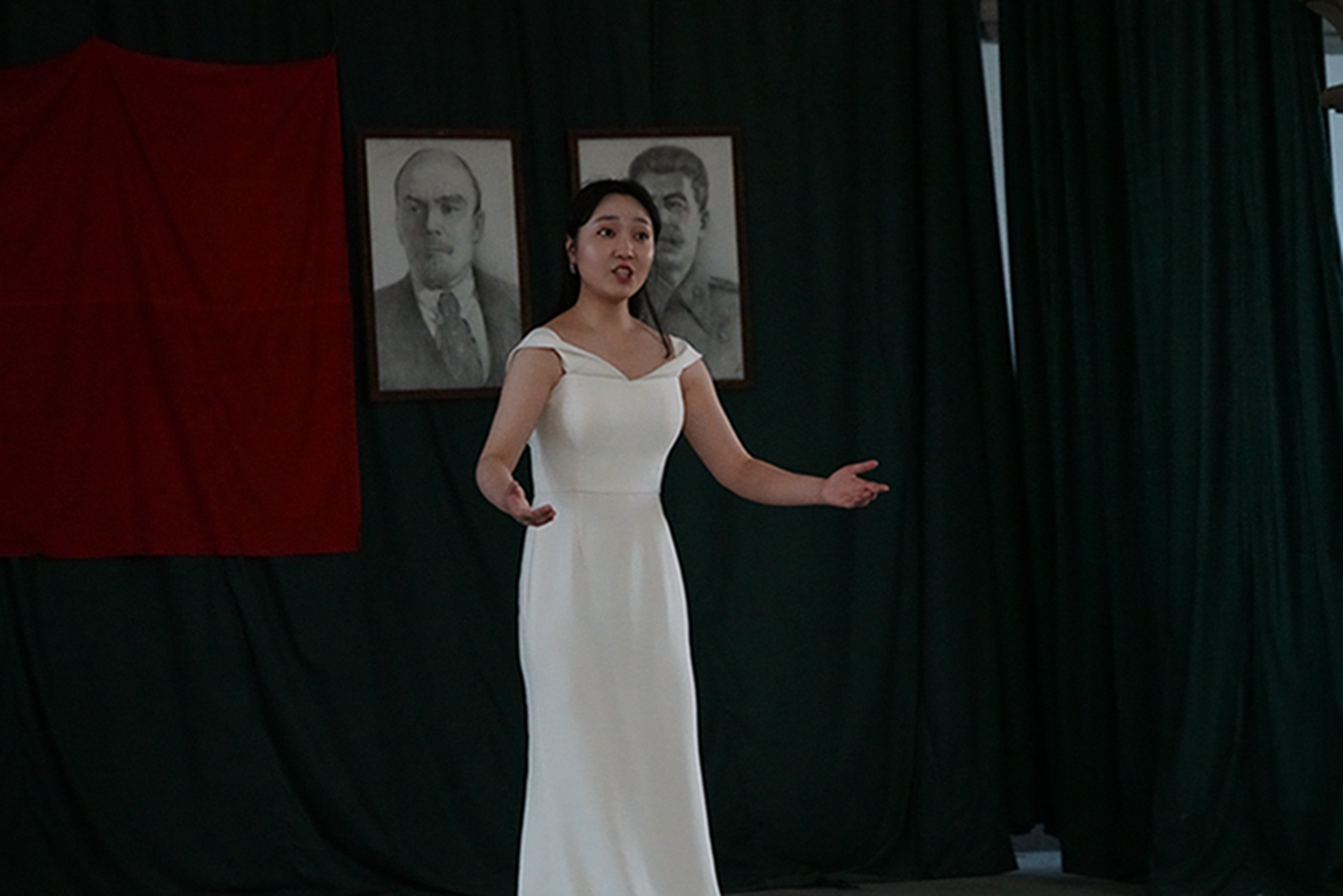 之后是1945年诞生在延安鲁艺的我国第一部民族新歌剧《白毛女》三个选曲:《十里风雪》(王珠峰演唱)《北风吹》(陈晓鸥演唱)、《扎红头绳》(陈晓鸥、王珠峰演唱,钢琴艺术指导李穆)。这部扎根中国大地的革命经典歌剧由延安鲁迅艺术学院集体创作。70余年前正是在这个教堂内排练,在延安中央大礼堂首演的。今天能站在这个舞台上再次唱响《白毛女》意义非凡。