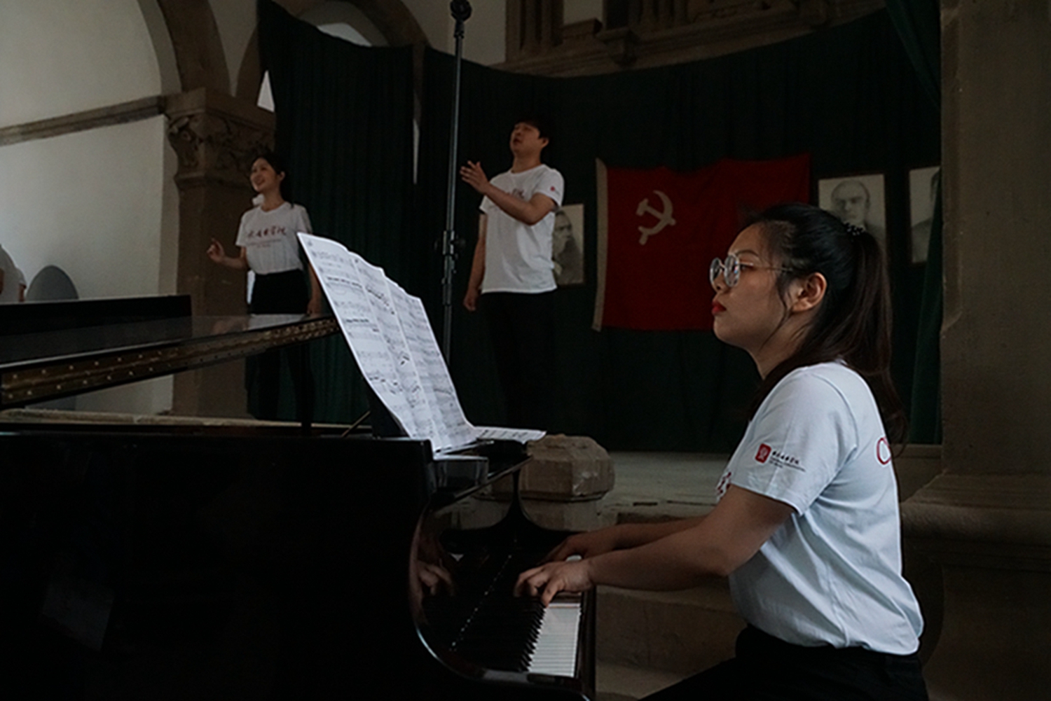 声乐歌剧系党总支副书记陈冰表示,这次活动也是声乐歌剧系党总支的活动,声歌系去年入职很多新老师,为教师团体注入了新鲜的血液。这次演出老师们担纲独唱部分,对青年教师而言既是传播、传承红色经典音乐,自身受到了教育,对同学们更起到了带头示范作用!党总支的全体同学都参加了这次有意义的演出,他们有的是独唱、二重唱、合唱,还有钢琴伴奏,从排练到演出完成,所有人都有自己专业的发挥,受到很大的鼓舞和教育。