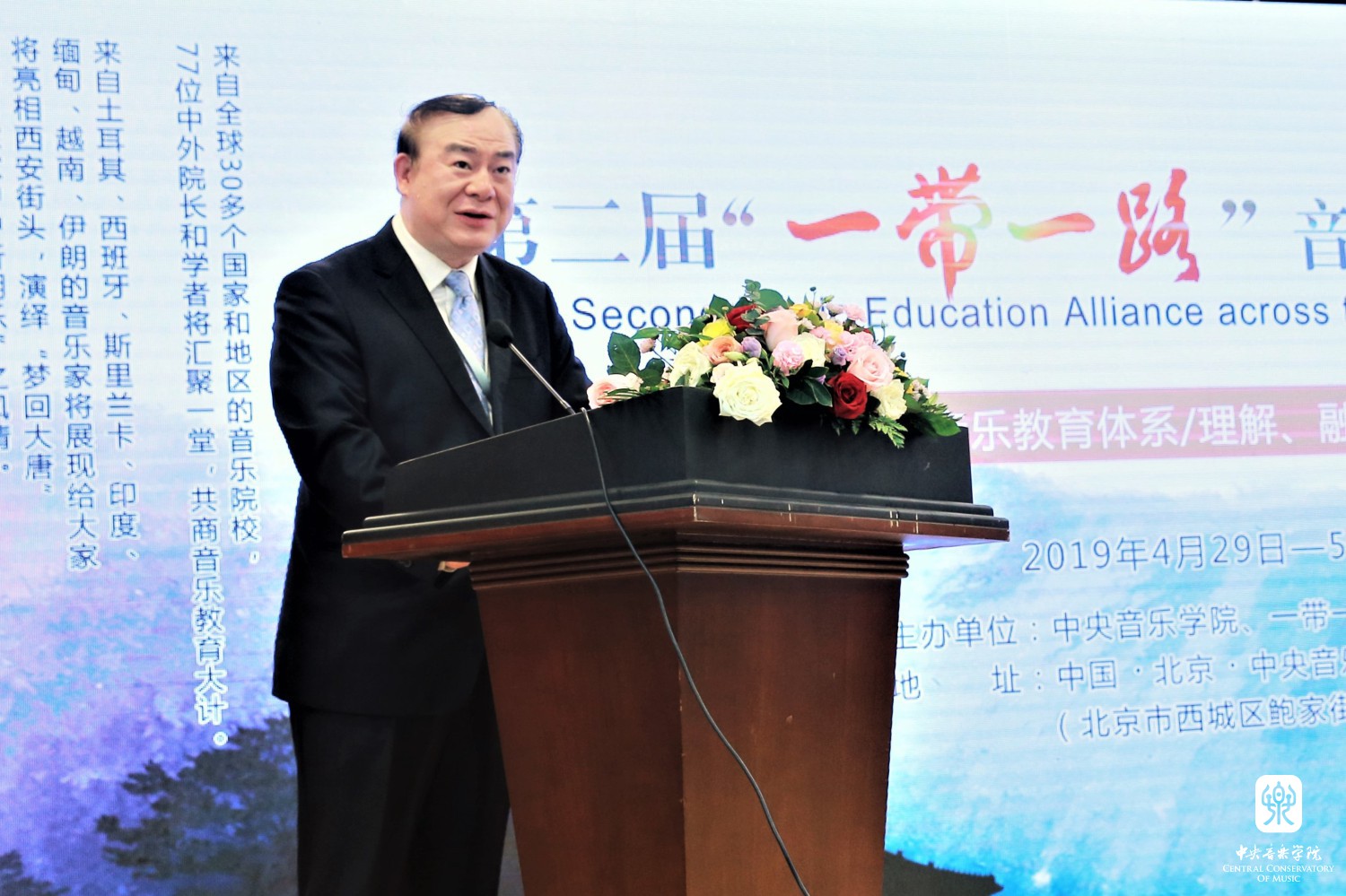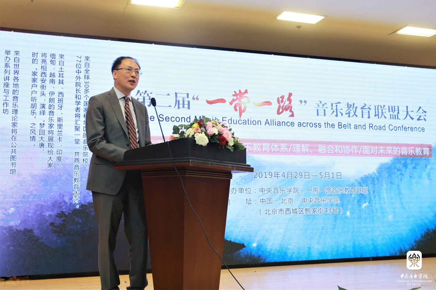 方军在讲话中说,音乐教育联盟非常好的呼应第二届“一带一路”国际合作高峰论坛,为这个峰会增添了很多的光彩。中国教育部非常重视并积极参与一带一路的建设。3年前教育部牵头制定了“一带一路”的教育行动计划,在整个“一带一路”的建设过程当中,充分发挥教育的基础性、先导性的作用。在落实行动计划的过程当中,教育部非常重视音乐教育的交流与合作,2017年5月,积极支持开云kaiyun官方网站成功地举办了首届“一带一路”音乐教育联盟大会,取得非常圆满的成果。习近平主席在首届“一带一路”高峰论坛上专门点到了要打造好音乐教育联盟的新平台,所以这个新平台也是我们国家“一带一路”对外合作过程当中的一个很有独特的一个亮点。