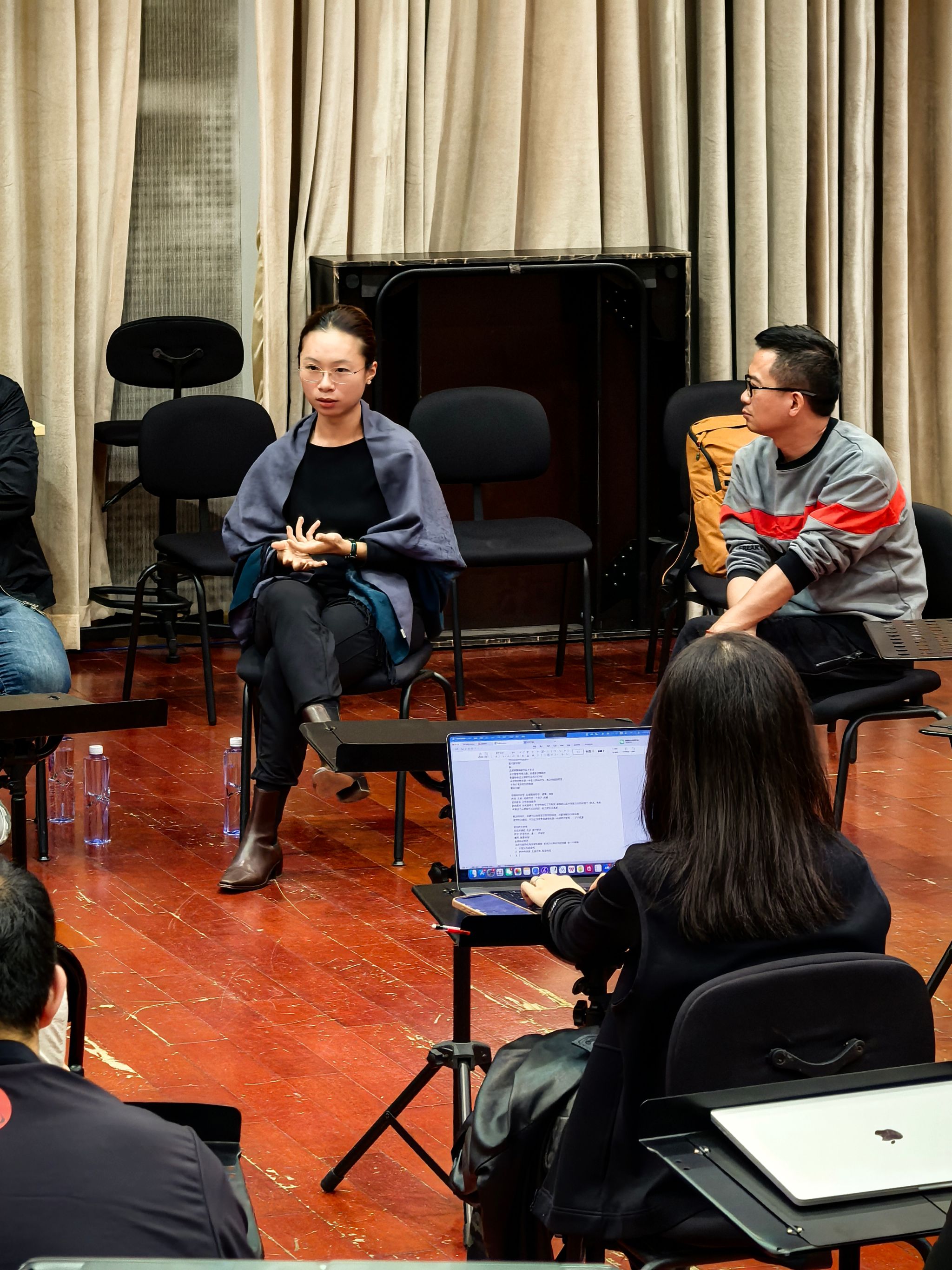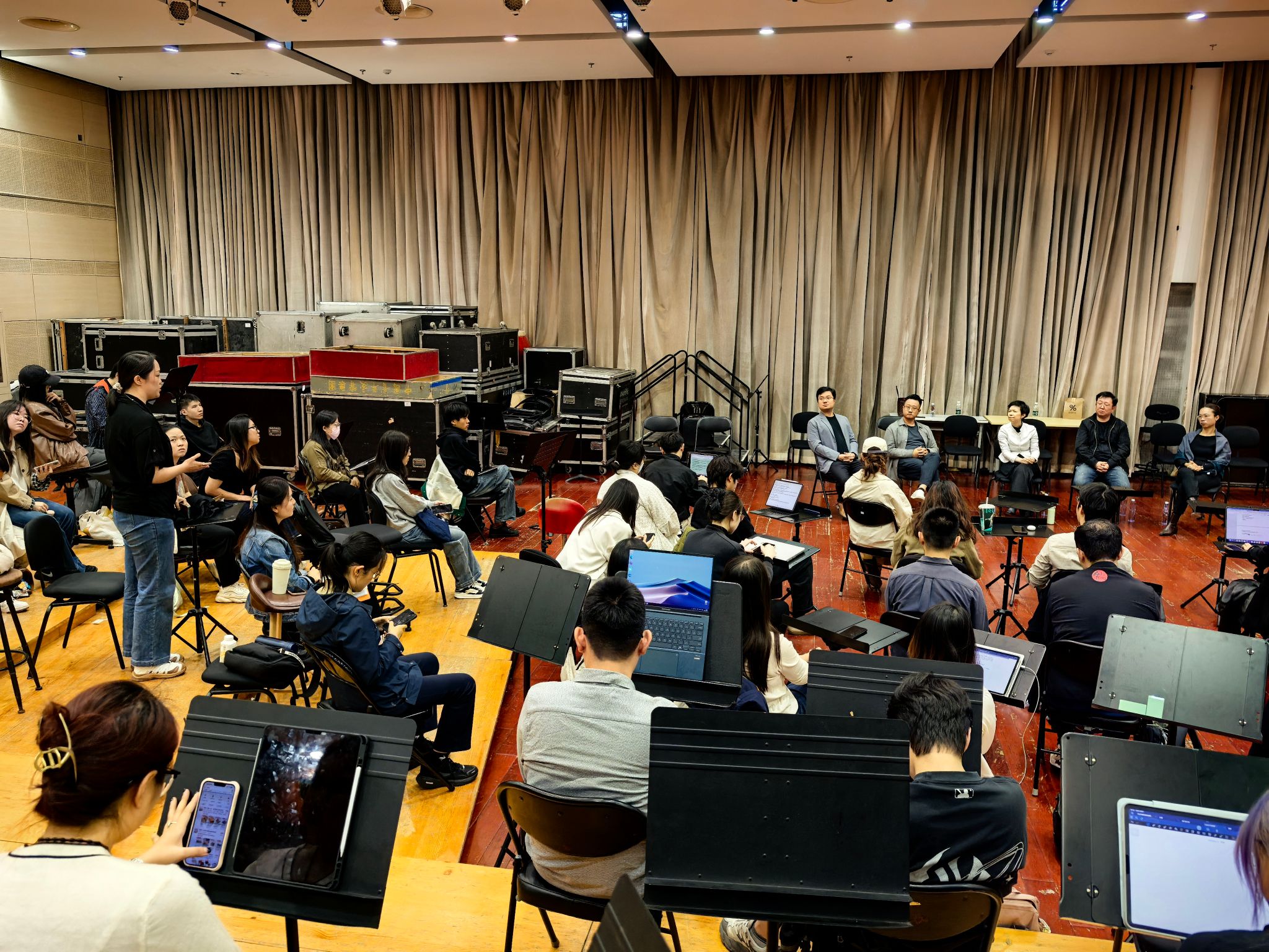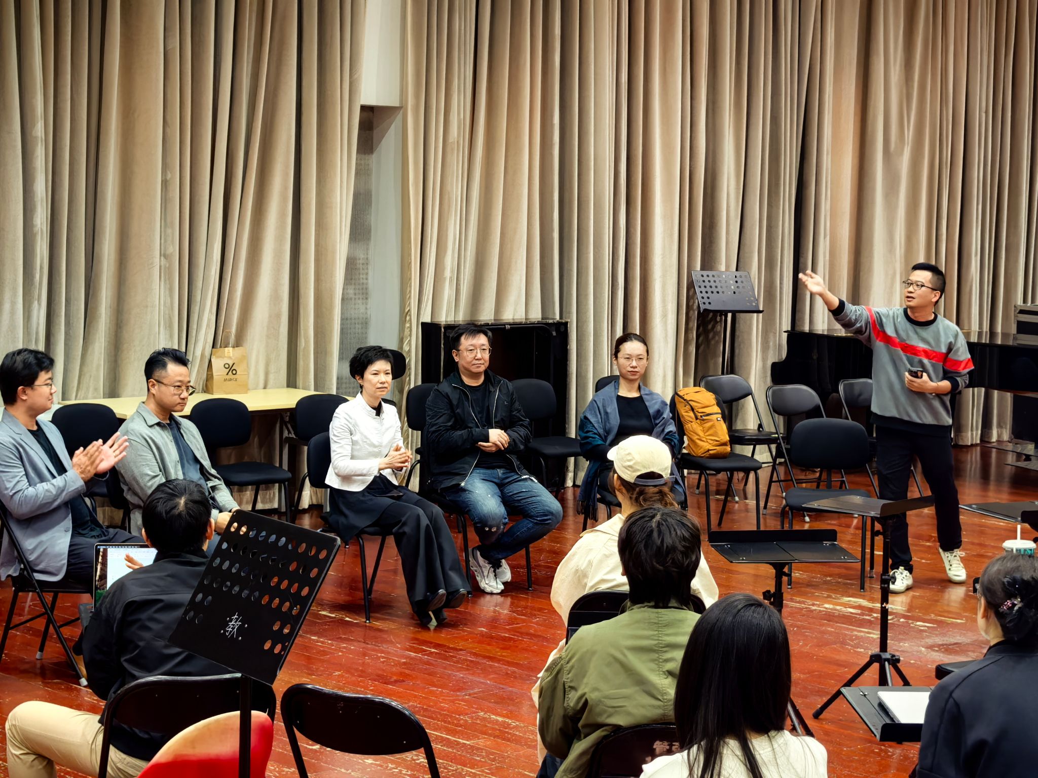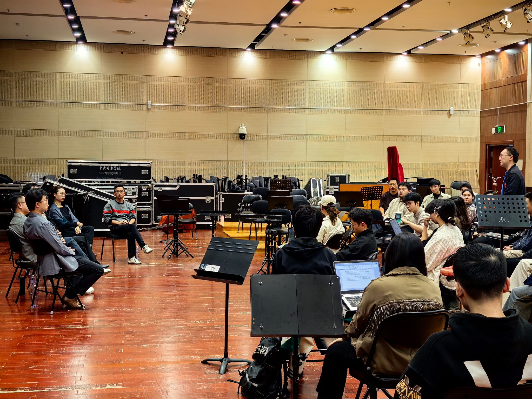 活动在形式安排上进行了创新:学生置身于乐团排练厅,位于演奏员席位,而指挥家与乐团首席则位于台下。这一布局打破了传统课堂的物理与心理界限,从形式上促进师生之间、创作者与表演者之间进行更为平等对话。