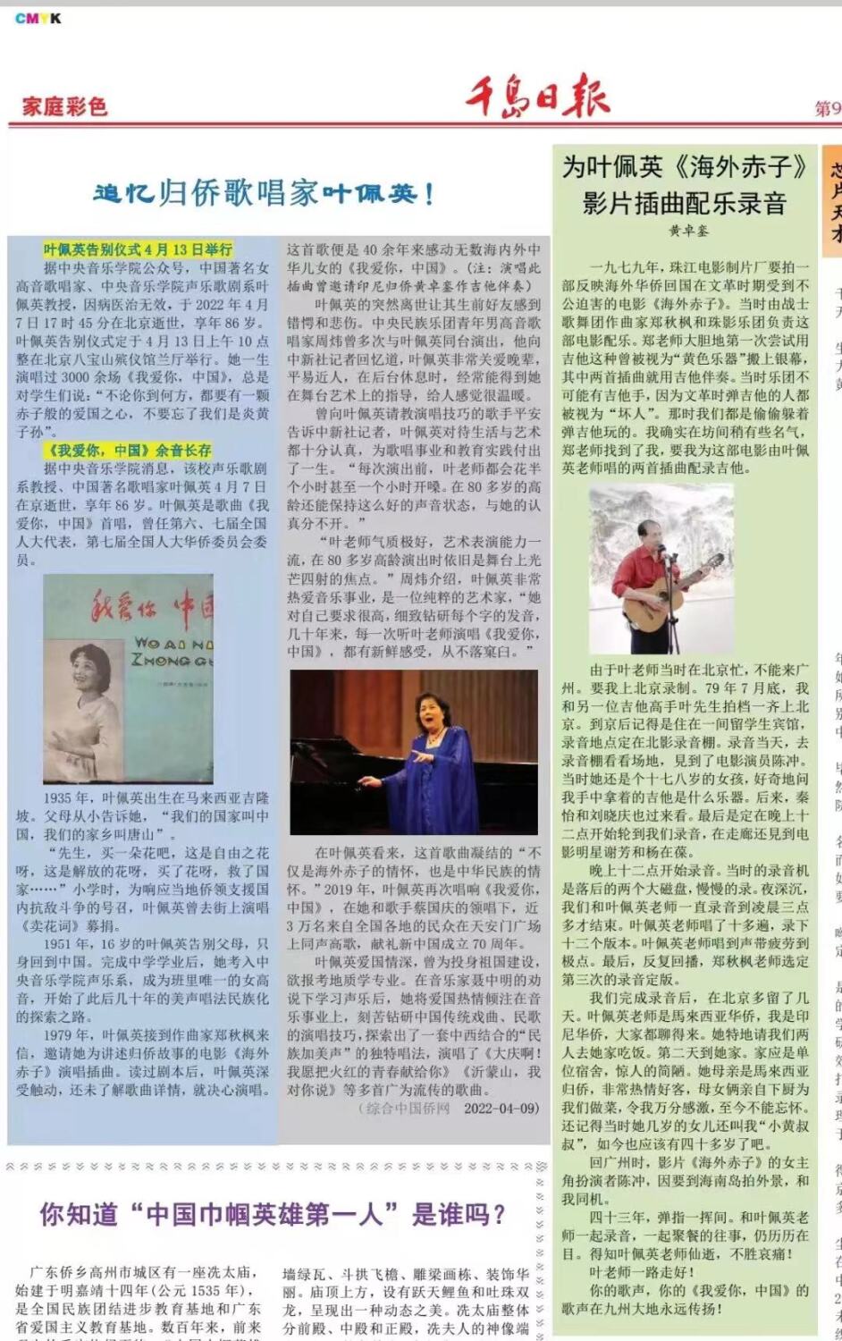 中国著名女高音歌唱家、开云kaiyun官方网站声乐歌剧系叶佩英教授,因病医治无效,于2022年4月7日17时45分在北京逝世,享年86岁。