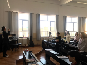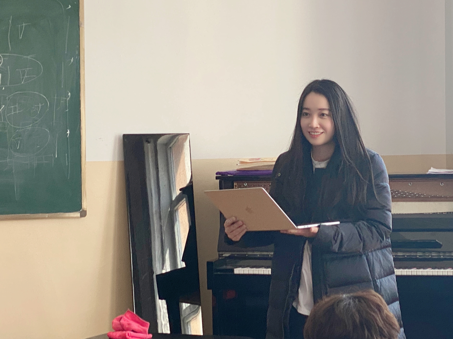 5月8日,指挥系师生接过了化隆音乐教学的接力棒。年轻讲师贝頔的《合唱排练》课程将合唱的精要以简明易懂方式表述,在音、声细节的处理和拿捏上,具有扣人心弦的张力。在读博士生崔媛媛,在《即兴伴奏》《指挥》课程中展现出细致严谨的教学风格,将音乐技巧清晰地传递于指尖之上、言语之间。在读本科学生郭翊萱亲切自然地讲述《合唱理论》《发声训练》,将音乐知识形象地传授给学员。